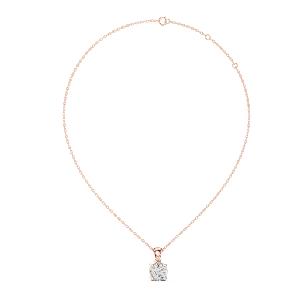 features a striking, round-cut central crystal housed within a unique Modern Architectural Cage setting. The design is defined by bold, polished rose gold-tone bars that create a structural frame around the stone, offering a fresh and industrial take on the classic solitaire. This open-frame architecture is specifically engineered to allow light to flood the crystal from all sides, maximizing its natural brilliance and fire. Suspended from a sleek, integrated bail, this pendant combines minimalist geometry with luxurious warmth, making it a standout piece for any modern jewelry collection.