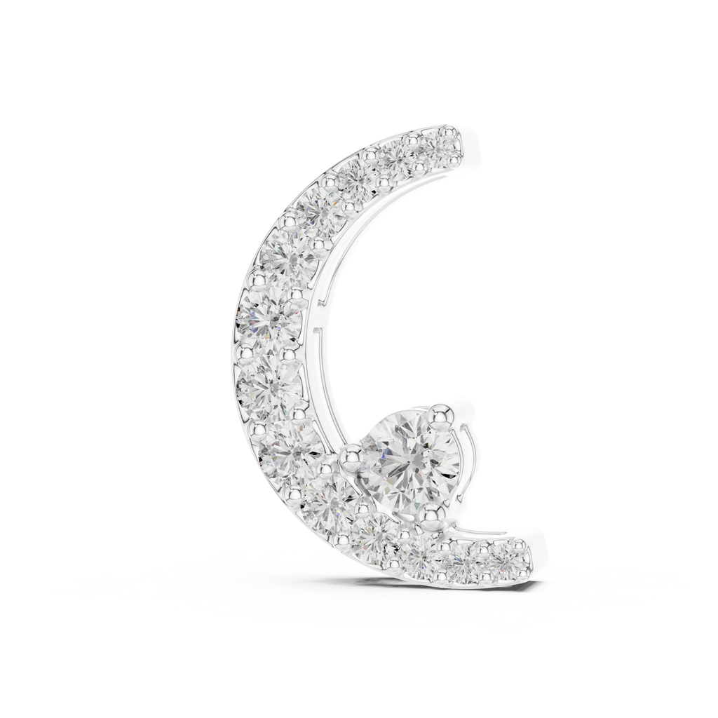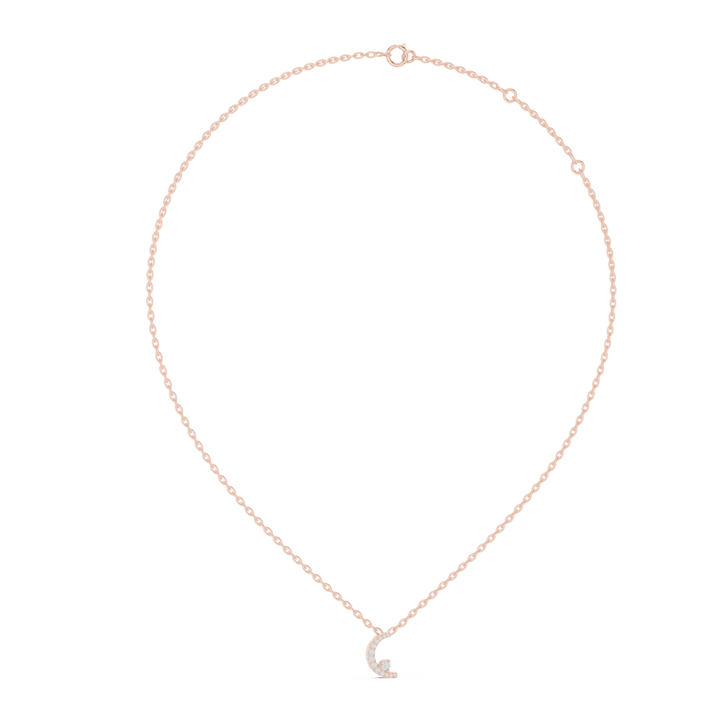 This sophisticated jewelry component is an asymmetrical crescent moon connector expertly crafted in elegant rose gold. The piece features a graceful, curved silhouette adorned with a shimmering row of pav?-set diamond accents that follow the arc of the moon. This delicate detail is perfectly balanced by a larger, brilliant round solitaire gemstone nestled near the inner curve, creating a modern and celestial-inspired aesthetic. Designed for versatility, its integrated loops and high-polish finish make it an ideal focal point for bridging chains in personalized necklaces or bracelets, offering a unique blend of timeless symbolism and contemporary luxury.