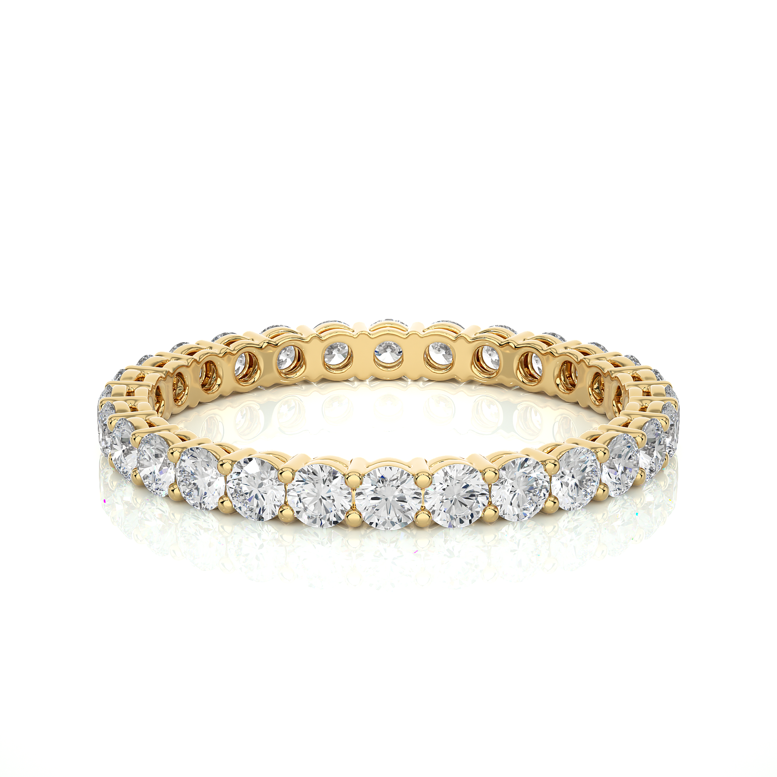 Elevate your elegance with our Classic Round Diamond Eternity Band, meticulously crafted in glowing solid gold. This timeless piece showcases a full circle of brilliant round-cut diamonds, each securely set in a refined shared prong setting that maximizes sparkle and symmetry.