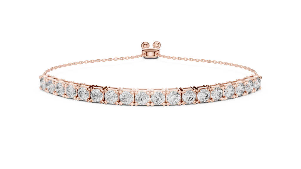 this stunning adjustable bracelet. It showcases a gracefully curved row of round, brilliant-cut crystals, each securely held to maximize its sparkle. The innovative design features a delicate yet durable box chain with a smooth sliding clasp, ensuring a custom fit for every wrist size. With its high-polish, coppery-pink finish, this accessory adds a touch of modern romance and effortless sophistication to any ensemble.