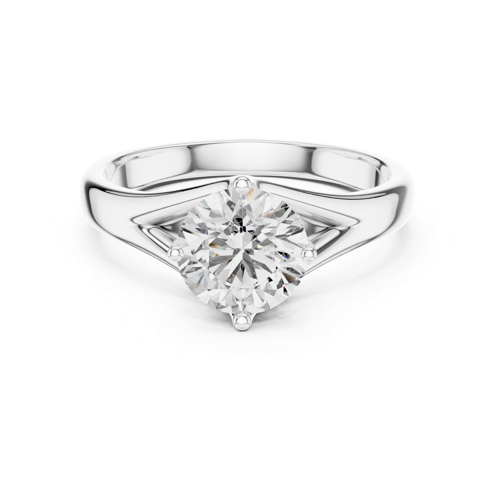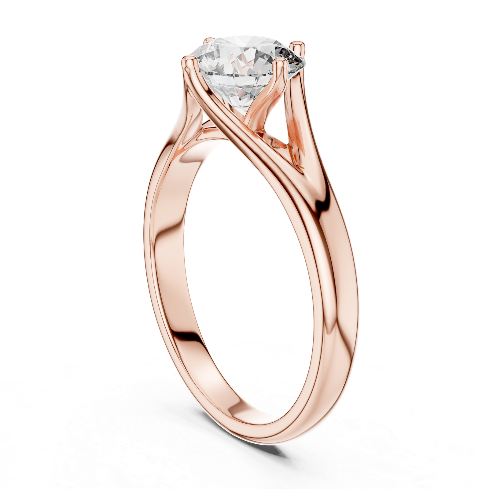 Elegant and contemporary, this Gold Solitaire Engagement Ring features a captivating round brilliant-cut diamond set in a secure four-prong setting. The band showcases a refined split shank design, drawing the eye toward the center stone while adding dimension and modern flair.