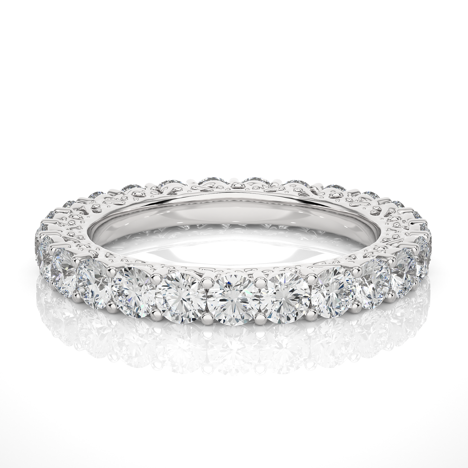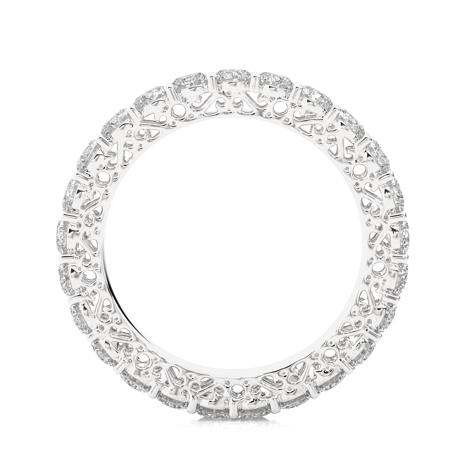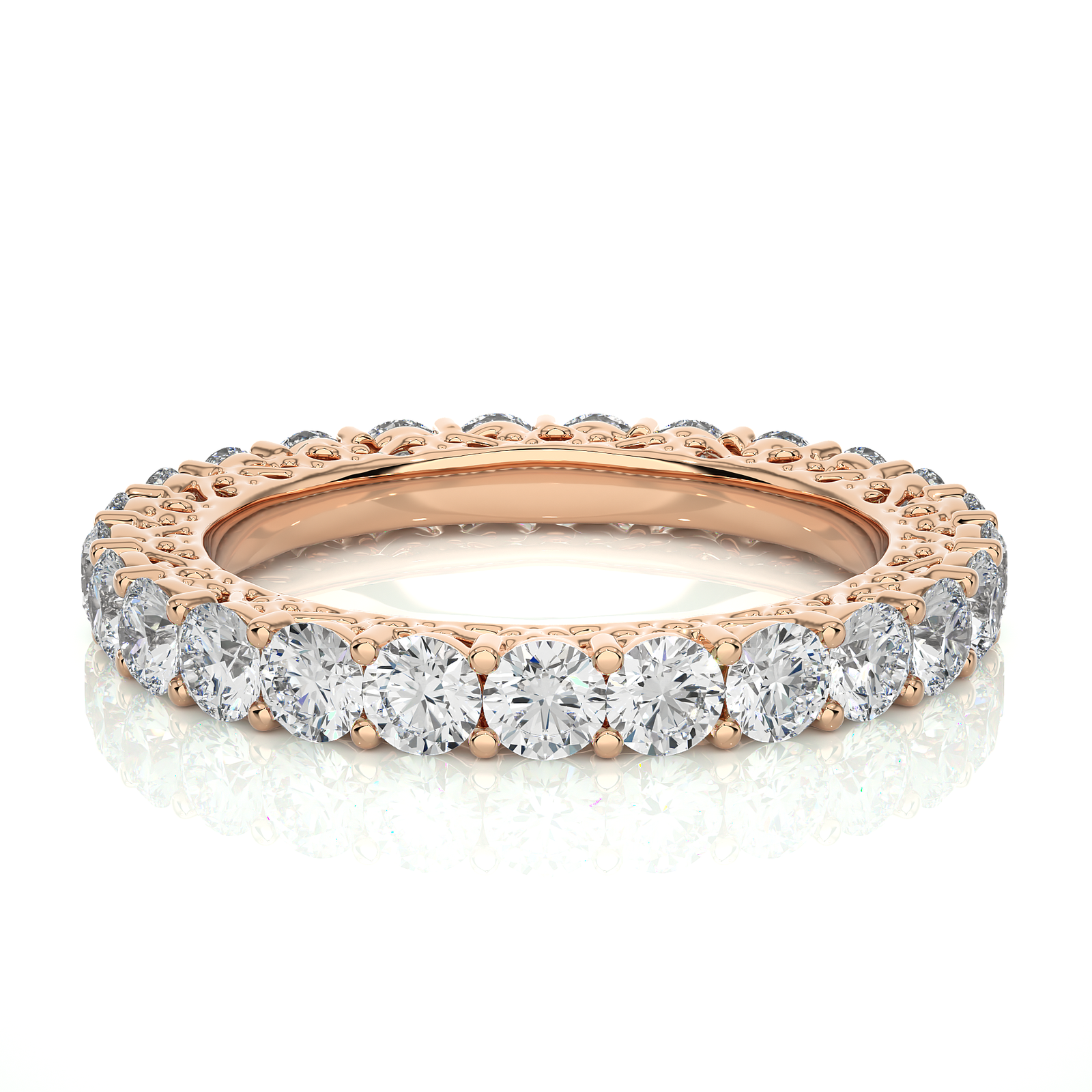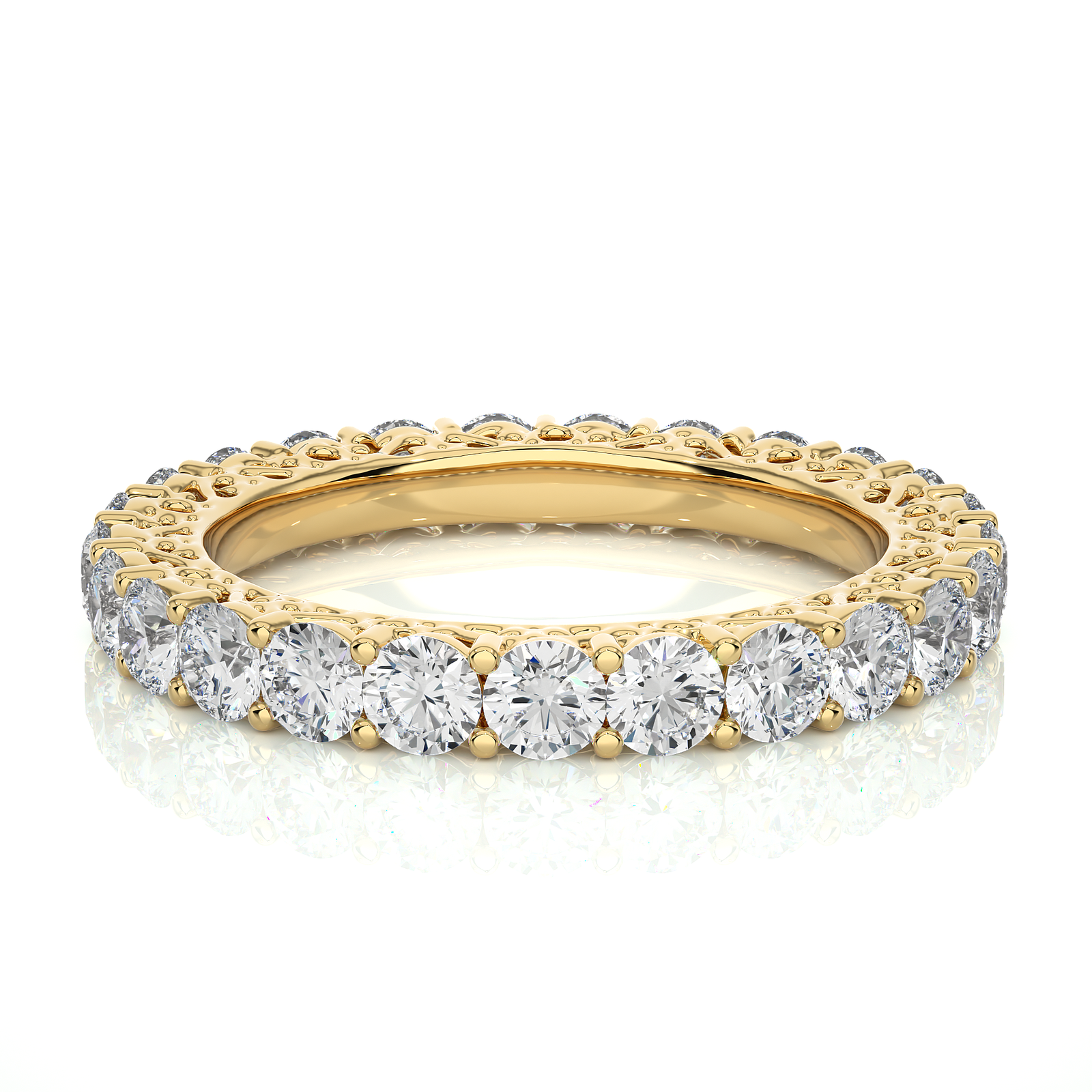 This exquisite eternity ring features brilliant round-cut diamonds set in lustrous solid gold. The intricate filigree detailing along the sides adds vintage charm, while the secure prong setting ensures maximum sparkle. A perfect blend of elegance and craftsmanship, ideal for weddings, anniversaries, or as a timeless luxury gift.