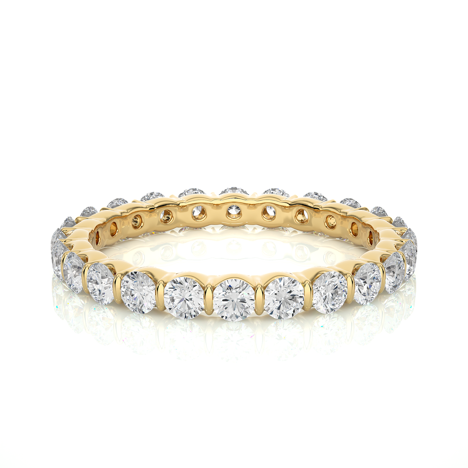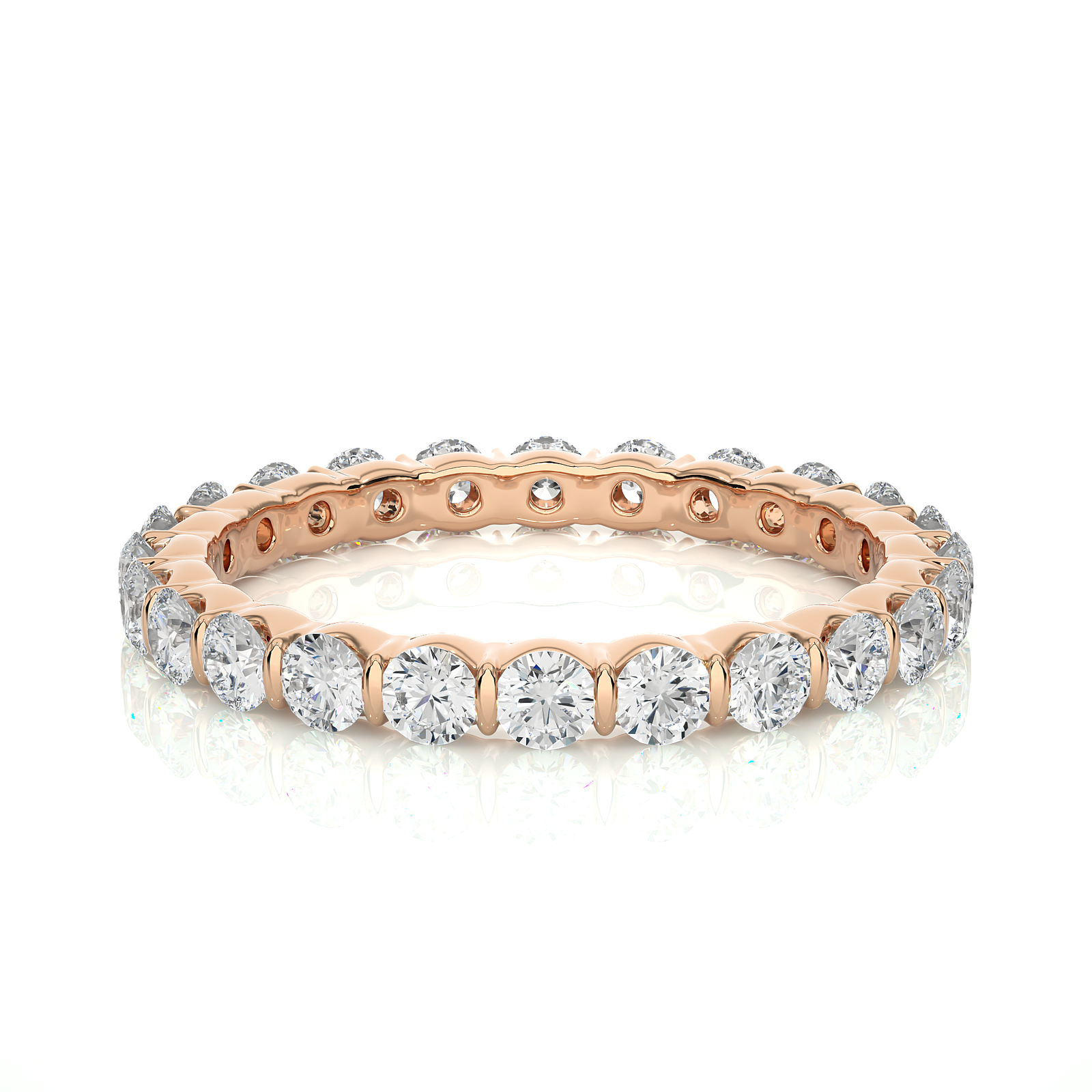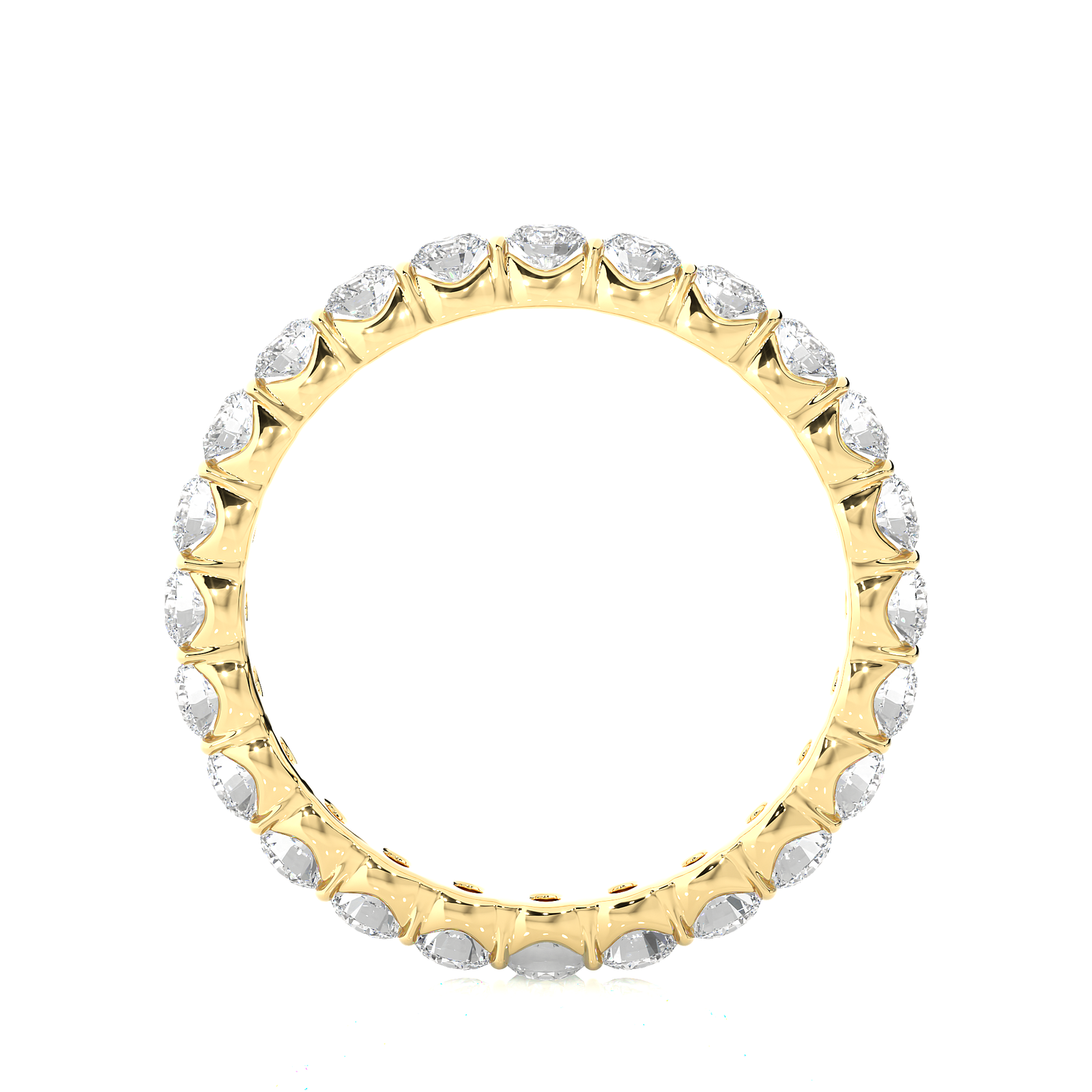 This stunning eternity ring showcases round brilliant diamonds in a shared prong setting for maximum sparkle. The elegant design allows light to flow freely through each stone, making it a captivating symbol of everlasting love. Perfect for weddings, anniversaries, or stacking with other rings.