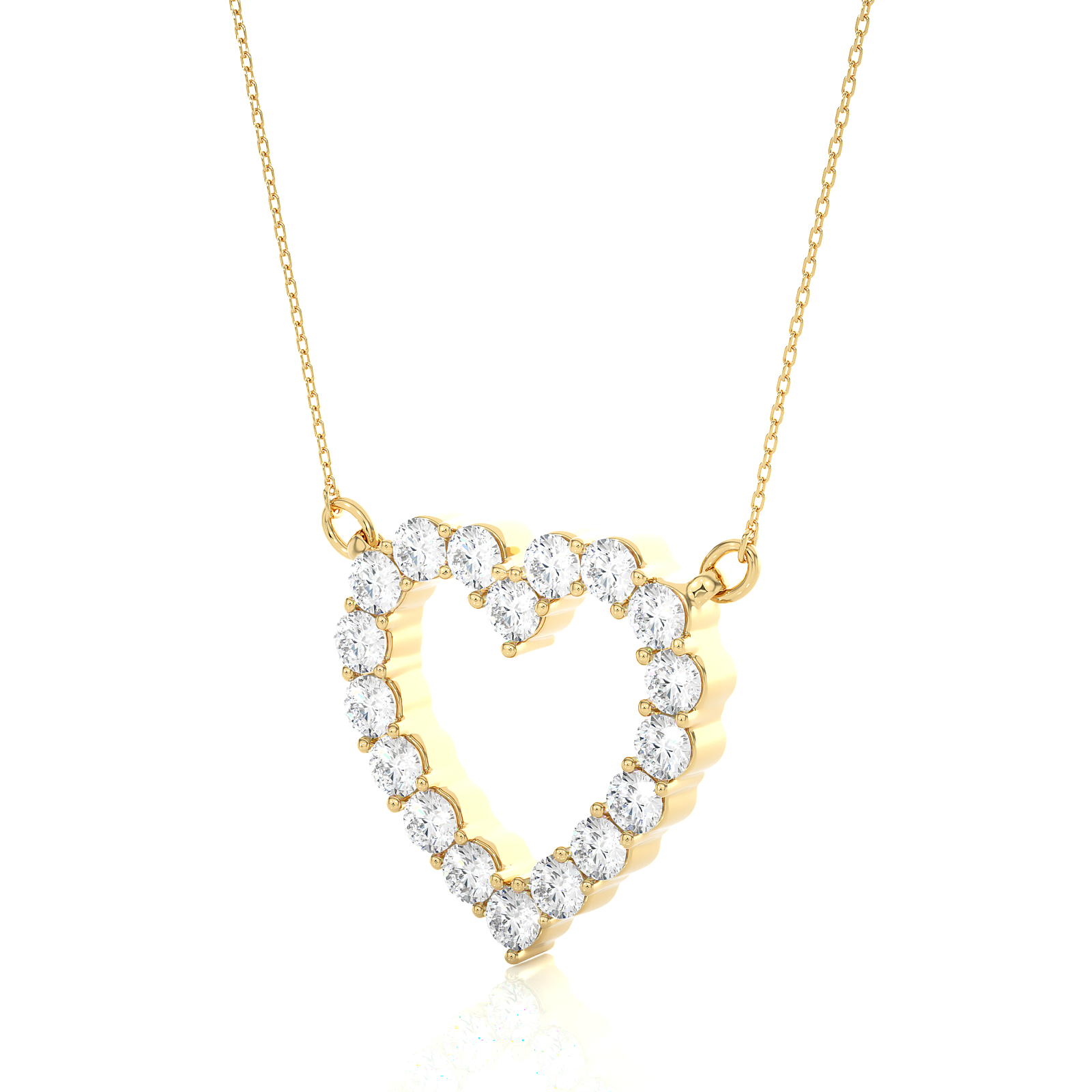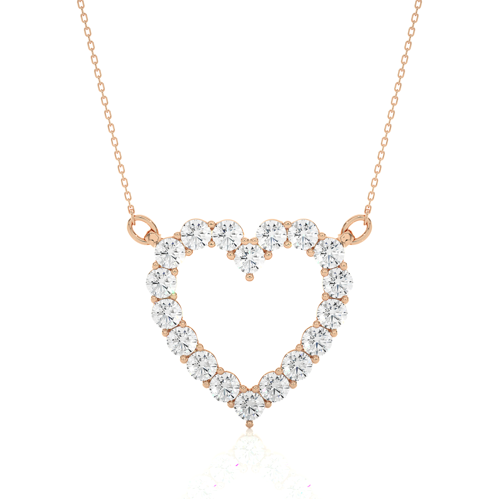 This elegant heart-shaped pendant adorned with dazzling round diamonds, gracefully set in romantic rose gold. Its open-heart design radiates charm and femininity, making it a perfect gift for anniversaries or special moments. A timeless symbol of affection, this pendant adds sparkle to any outfit with heartfelt elegance.
