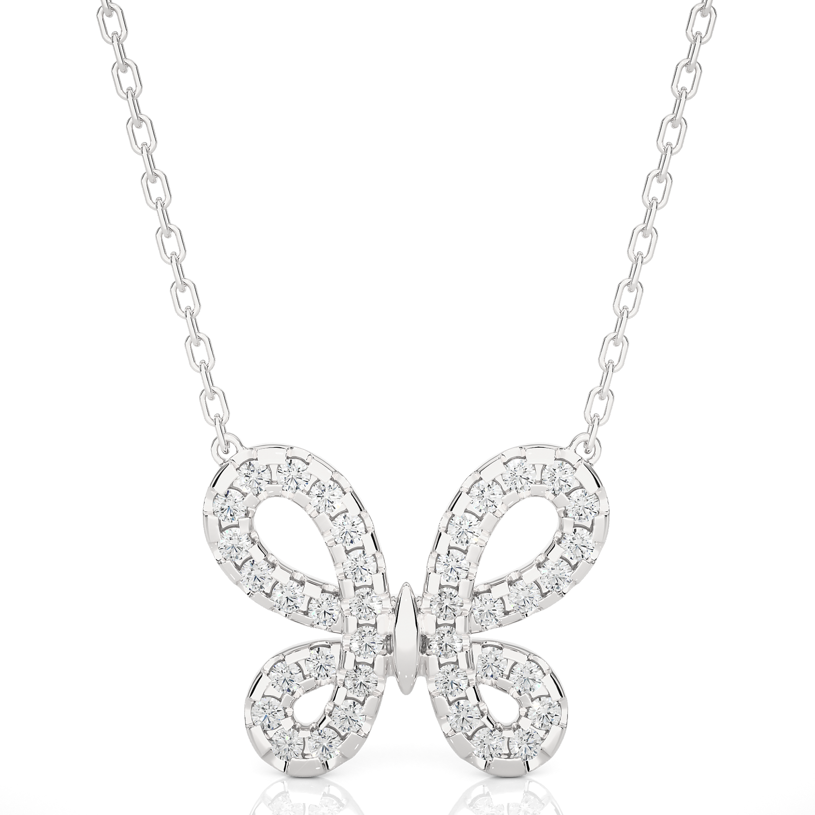 This butterfly pendant necklace features dazzling diamonds set in polished yellow gold. The intricate design captures the beauty and grace of a butterfly, making it a perfect accessory for everyday wear or special occasions. A timeless gift symbolizing transformation and elegance.