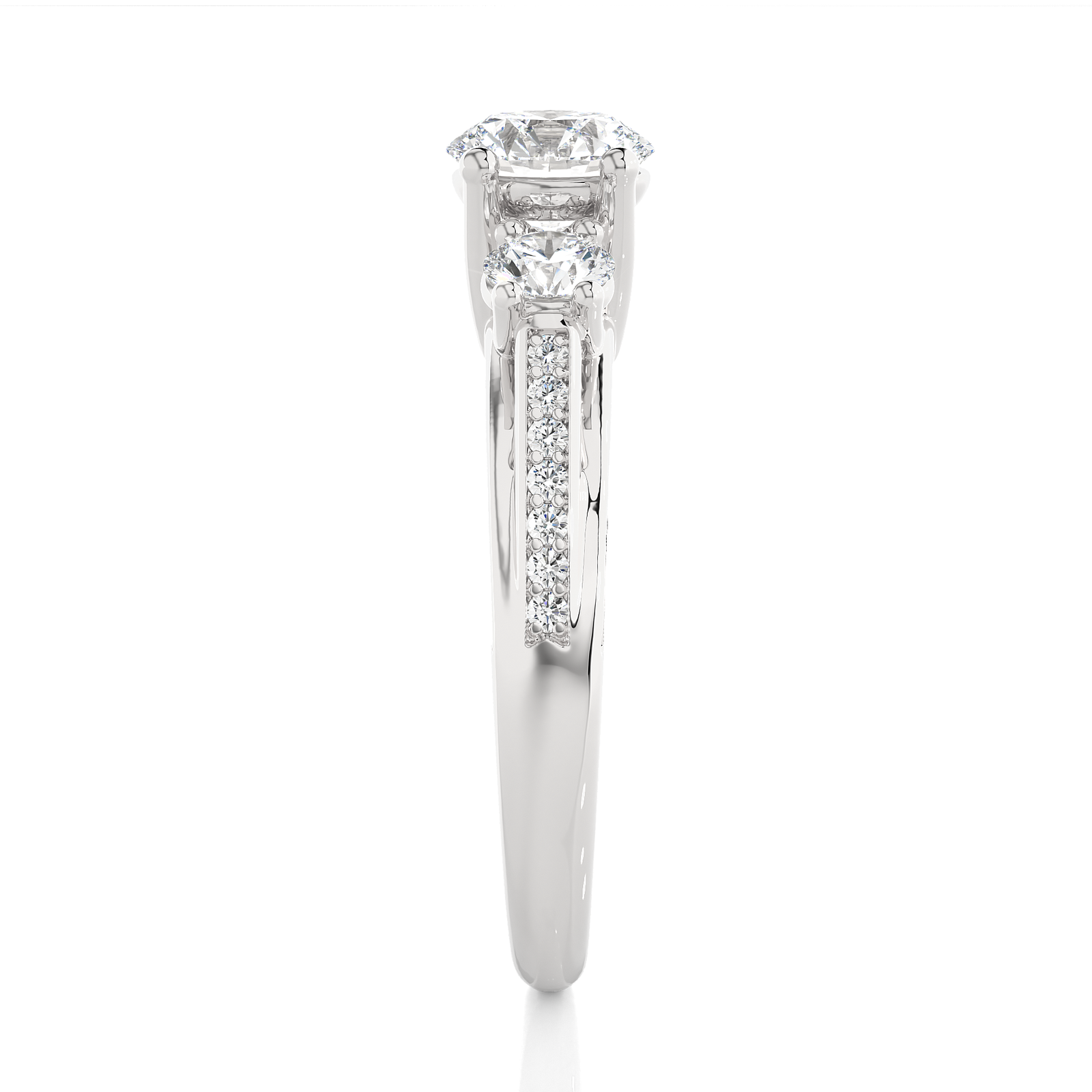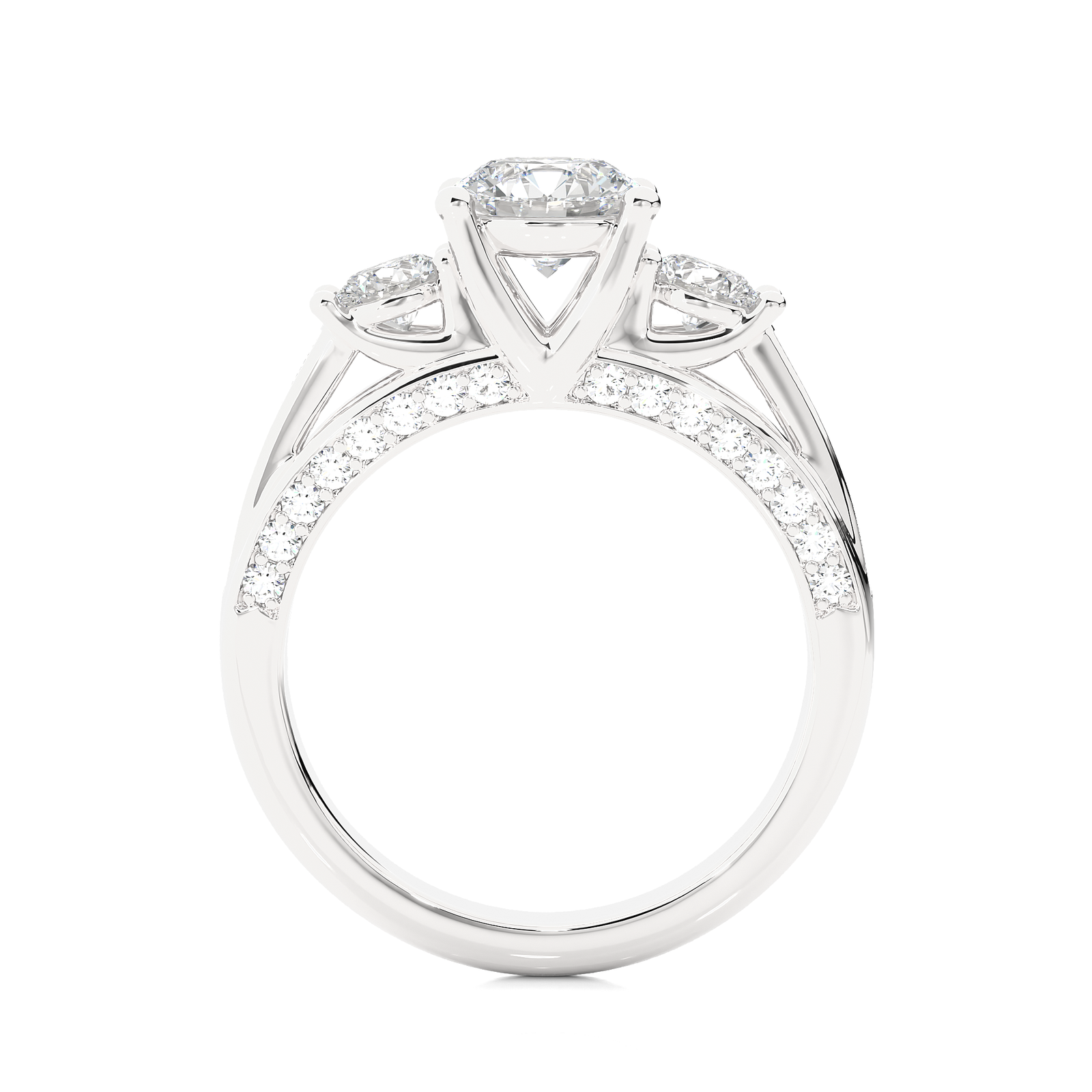 This exquisite yellow gold ring features a stunning three-stone diamond setting elevated by a hidden pavé diamond bridge beneath the center stones. A graceful blend of classic elegance and modern flair, it symbolizes love’s enduring journey—past, present, and future—making it a perfect engagement or anniversary piece with radiant brilliance.