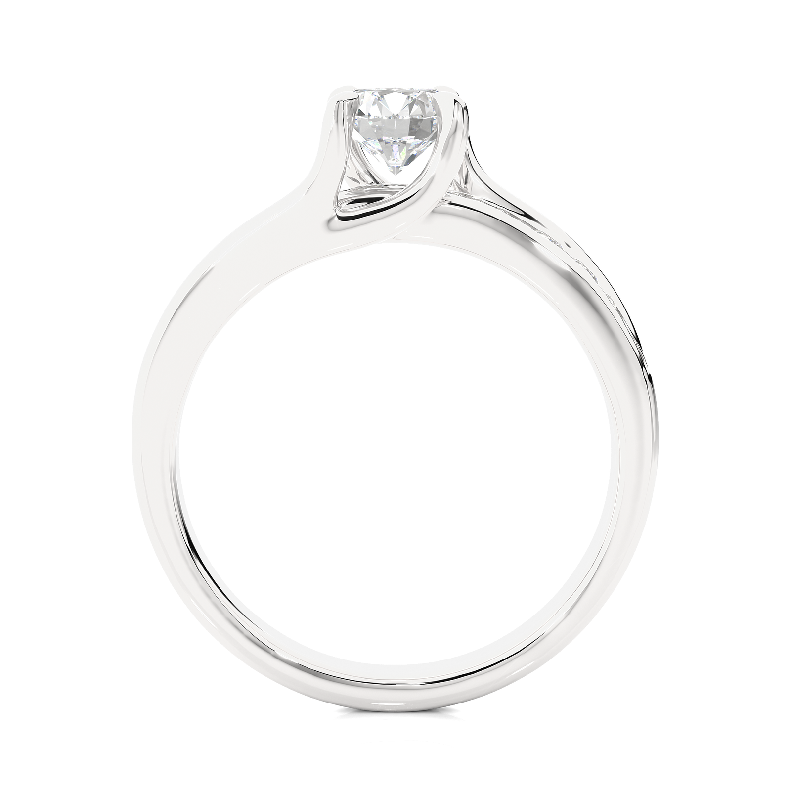 This contemporary engagement ring showcases a brilliant round-cut center diamond held by sleek split prongs. Channel-set diamonds elegantly line the band, creating a seamless sparkle that blends classic sophistication with modern design. Crafted in lustrous white gold, this ring is a striking symbol of love, commitment, and timeless style.
