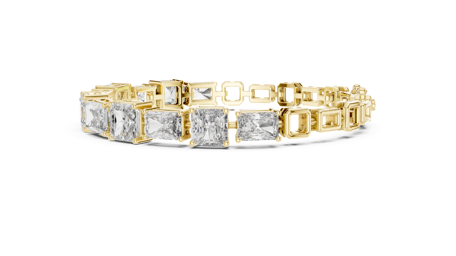 Elevate your jewelry collection with this show-stopping emerald-cut halo diamond bracelet, masterfully set in rich 18K yellow gold. Each link showcases a radiant emerald-cut diamond framed by a brilliant halo of round-cut diamonds, creating a luxurious and light-catching effect from every angle. The elegant craftsmanship and bold design make this piece a true statement of sophistication and glamour. Center Stones: Emerald-Cut Diamonds Accent Stones: Round Brilliant Diamonds Design: Linked halo settings for seamless sparkle Clasp: Secure hidden box clasp with safety latch Perfect For: Black-tie events, milestone gifts, or heirloom-quality luxury Setting Style: Halo Setting with Prong and Link Construction ? Each emerald-cut diamond is surrounded by a glittering halo of round brilliants, held securely in prong settings and connected via polished, openwork gold links for fluid movement and all-around brilliance.