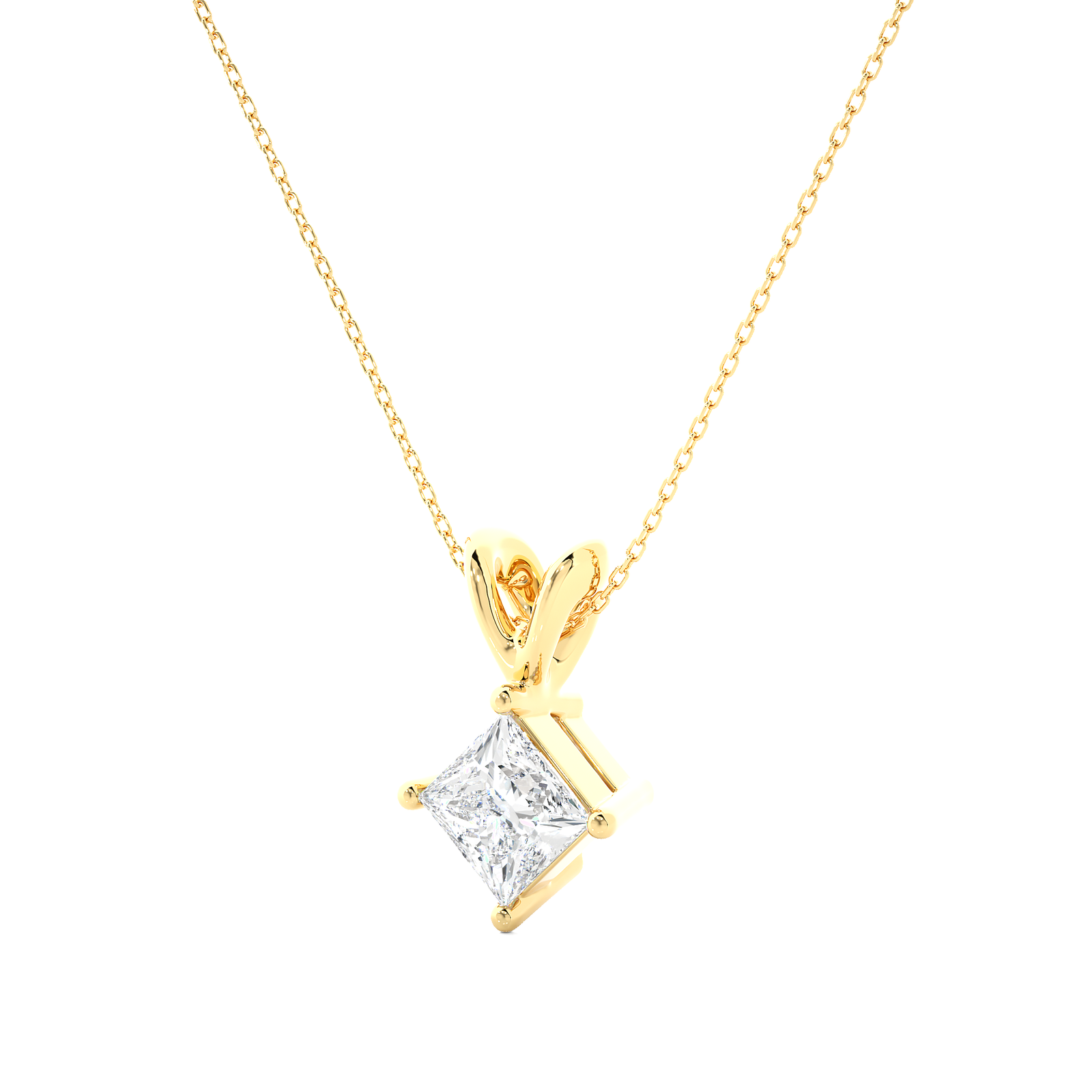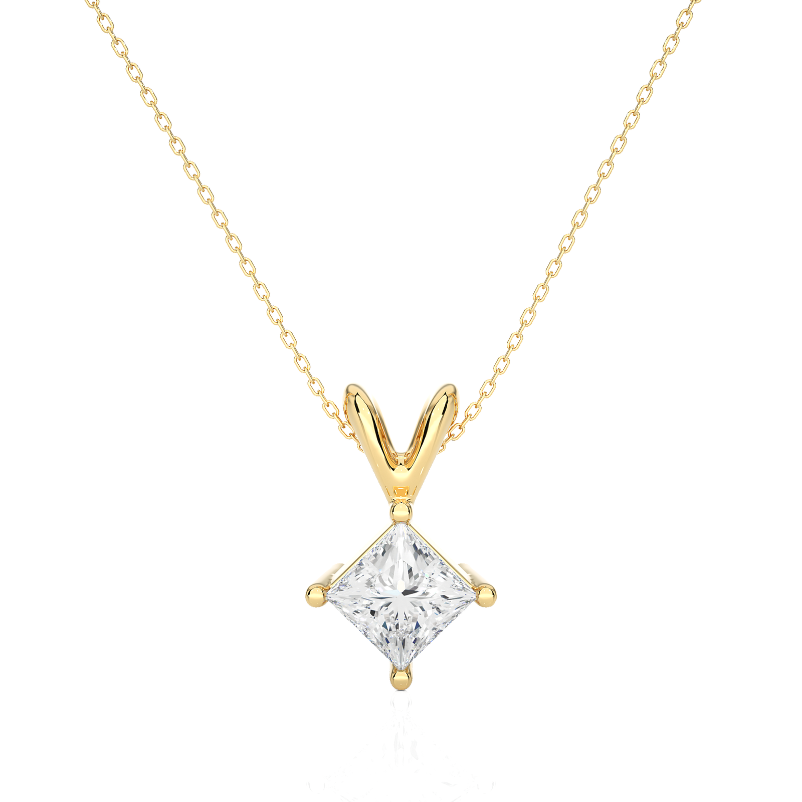This stunning pendant features a brilliant princess-cut diamond set in a sleek gold frame. The minimalist design highlights the diamond’s sparkle, making it perfect for everyday wear or special occasions. A timeless piece that adds elegance and sophistication to any jewelry collection.