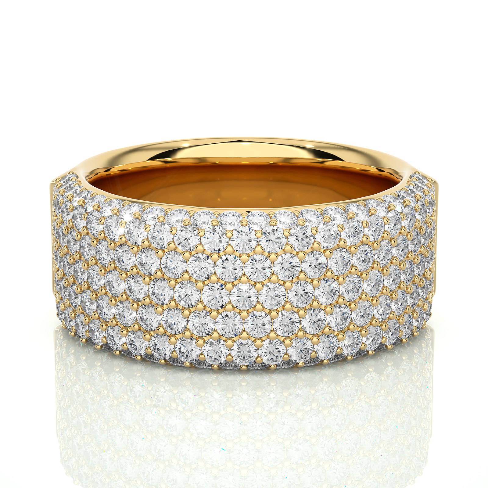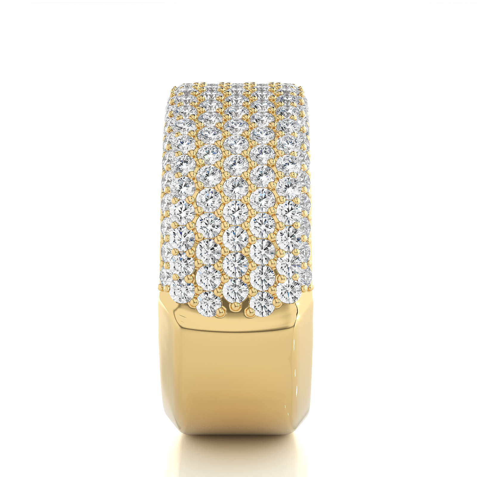 This stunning gold wide band ring dazzles with multiple rows of sparkling round-cut diamonds, creating an opulent, eye-catching design. Perfect for making a bold statement, it combines classic elegance with modern luxury, ideal for special occasions or elevating everyday style with unmatched brilliance and sophistication.