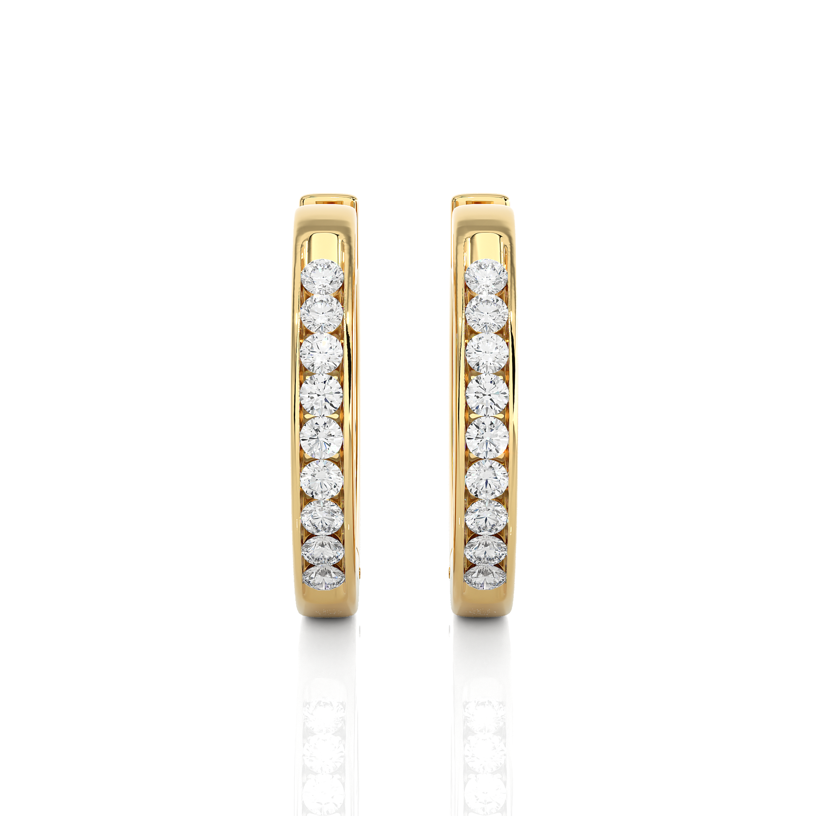 Elevate your everyday elegance with these stunning diamond huggie hoop earrings. Crafted in polished gold, each hoop features a sleek row of brilliant-cut diamonds that add radiant sparkle. With a secure hinge closure and modern design, they’re the perfect blend of timeless sophistication and contemporary style for any occasion.