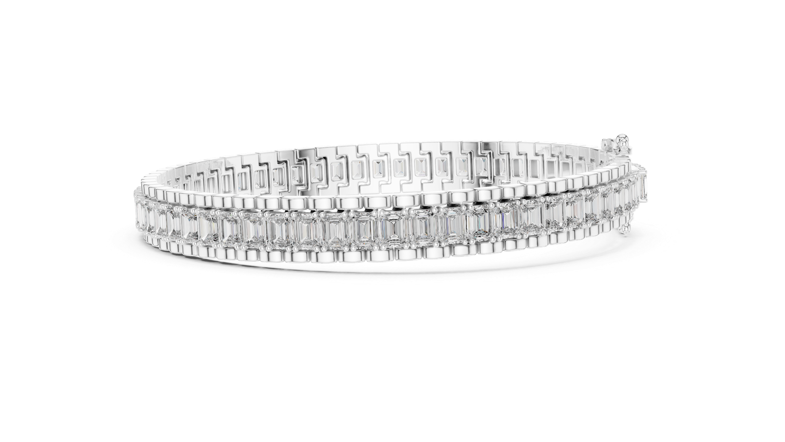 Elevate your elegance with this stunning tennis bracelet, featuring a continuous row of meticulously set baguette-cut diamonds. The sleek, geometric brilliance of each diamond is framed in a luxurious gold setting, offering a bold yet timeless look. Whether worn alone or stacked, this bracelet is a refined statement of luxury and craftsmanship. Material: gold stone: emerald -Cut Diamonds Clasp: Secure Box Clasp with Safety Latch Style: Classic Tennis Bracelet Occasion: Perfect for weddings, anniversaries, and formal events