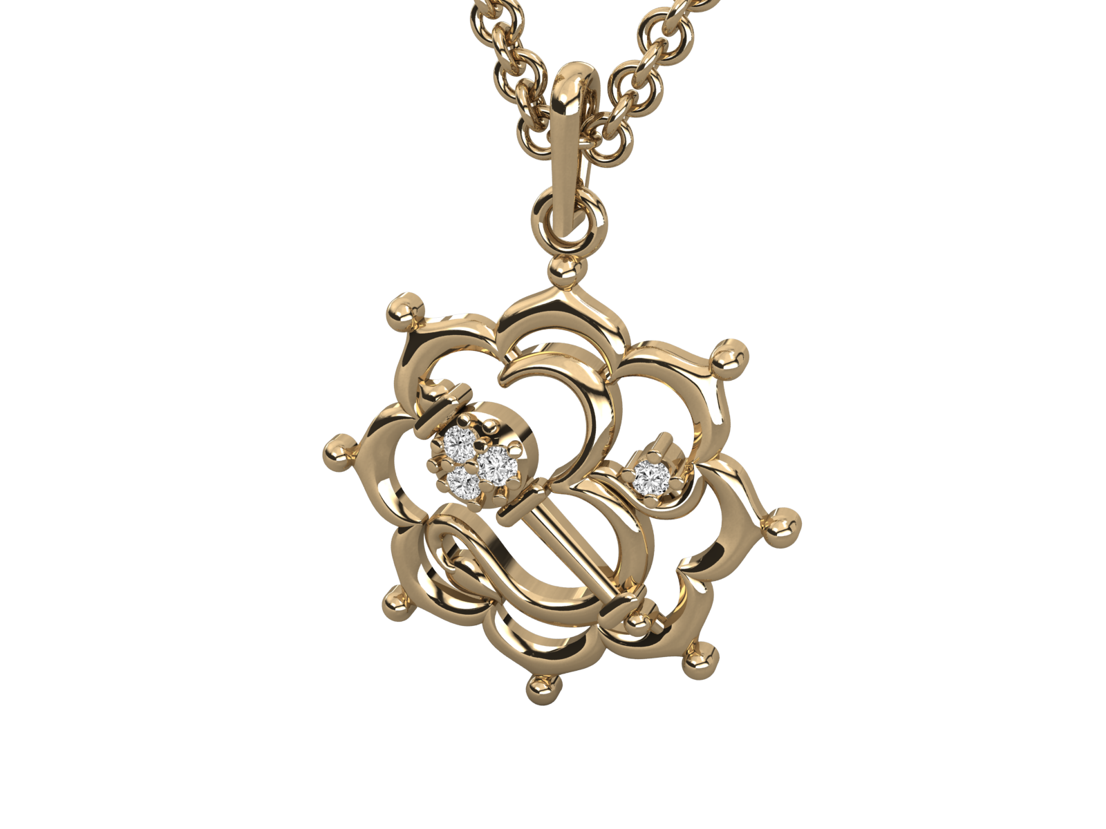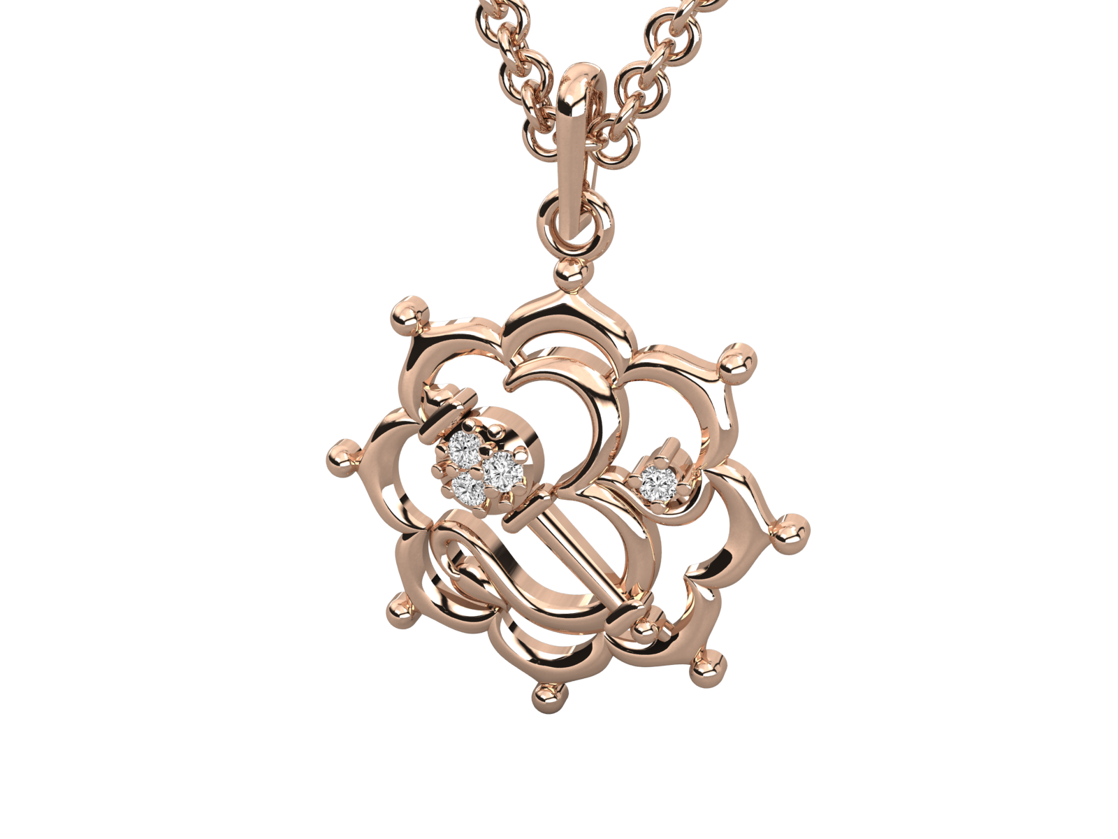 Grace meets spirituality in this intricately crafted gold pendant, featuring a radiant Om symbol enclosed within a blooming lotus design. Sparkling diamond accents add a divine brilliance, making it a perfect blend of tradition and elegance. Ideal for daily wear or gifting, this pendant symbolizes peace, purity, and inner strength.