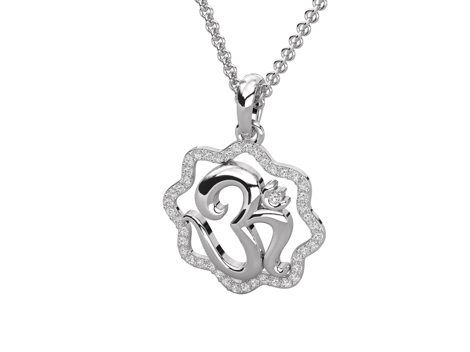 This divine pendant showcases a beautifully sculpted Om symbol encased in a lotus-inspired diamond-studded frame. Crafted in radiant yellow gold, it blends spiritual grace with luxurious elegance. Perfect for daily wear or gifting, this pendant embodies peace, purity, and timeless devotion in a refined, contemporary design. A truly meaningful treasure.