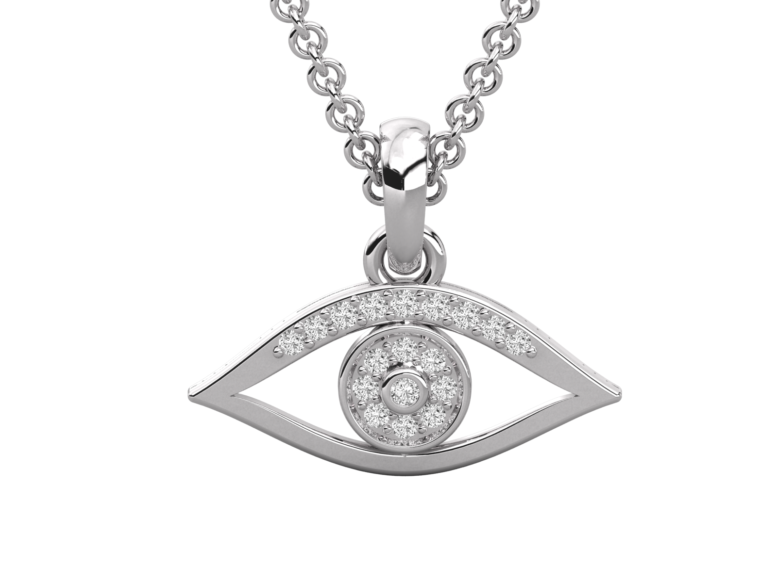 This dazzling evil eye pendant is adorned with brilliant diamonds, symbolizing protection and positive energy. Its modern yet meaningful design makes it perfect for daily wear or as a thoughtful gift. Shield yourself from negativity with this timeless charm that blends tradition with contemporary elegance.