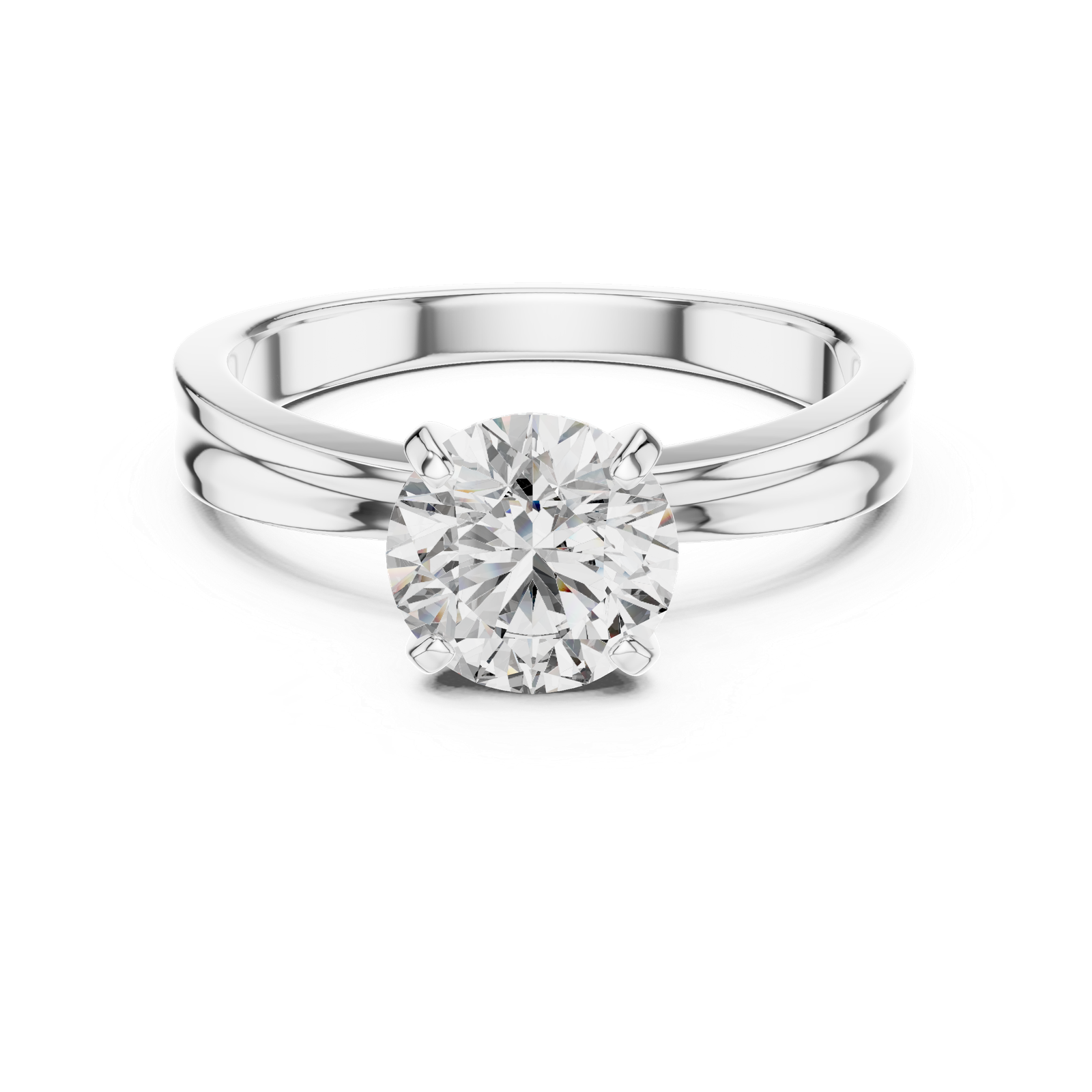 Elevate your love story with this stunning solitaire diamond ring, featuring a dazzling round brilliant-cut diamond set in a bold and polished gold band. The sleek, wide band adds a touch of modern luxury, while the classic four-prong setting allows the diamond to take center stage with radiant brilliance.