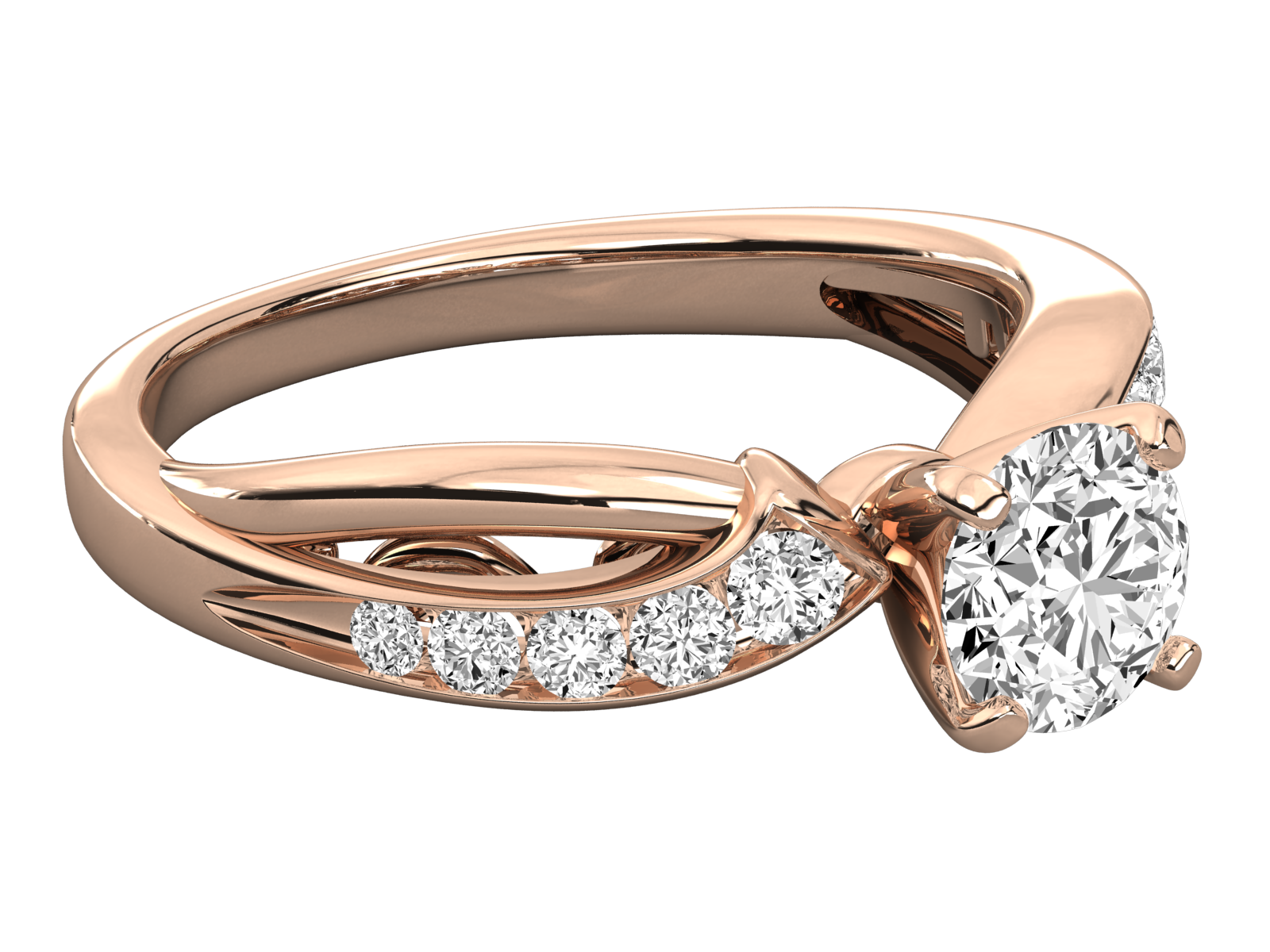 This stunning rose gold engagement ring features a brilliant round-cut center stone and a gracefully twisted band adorned with sparkling side diamonds. Crafted for elegance and uniqueness, it’s the perfect symbol of love and commitment. Ideal for proposals, anniversaries, or promise rings. A timeless piece with modern charm and sparkle.