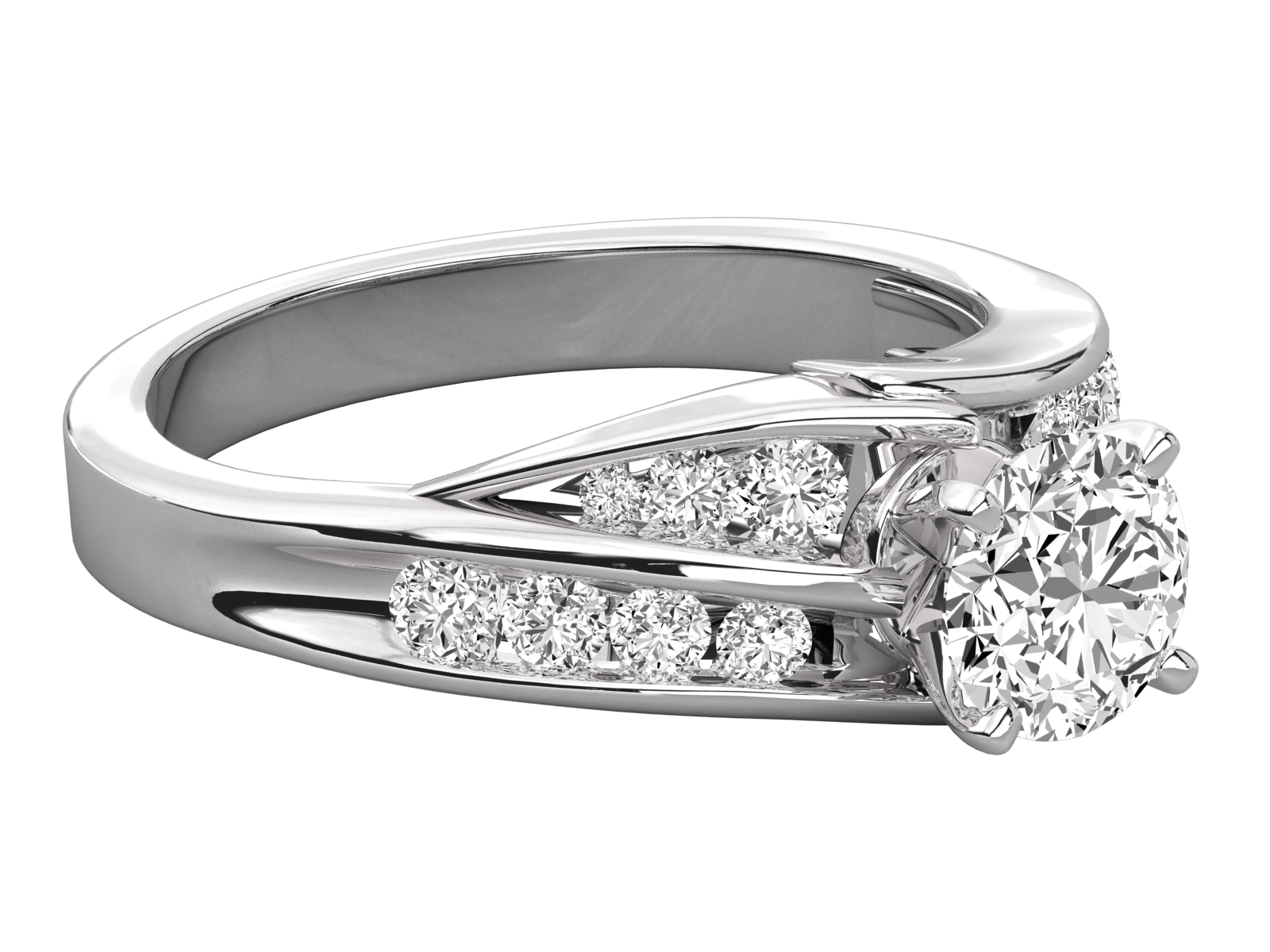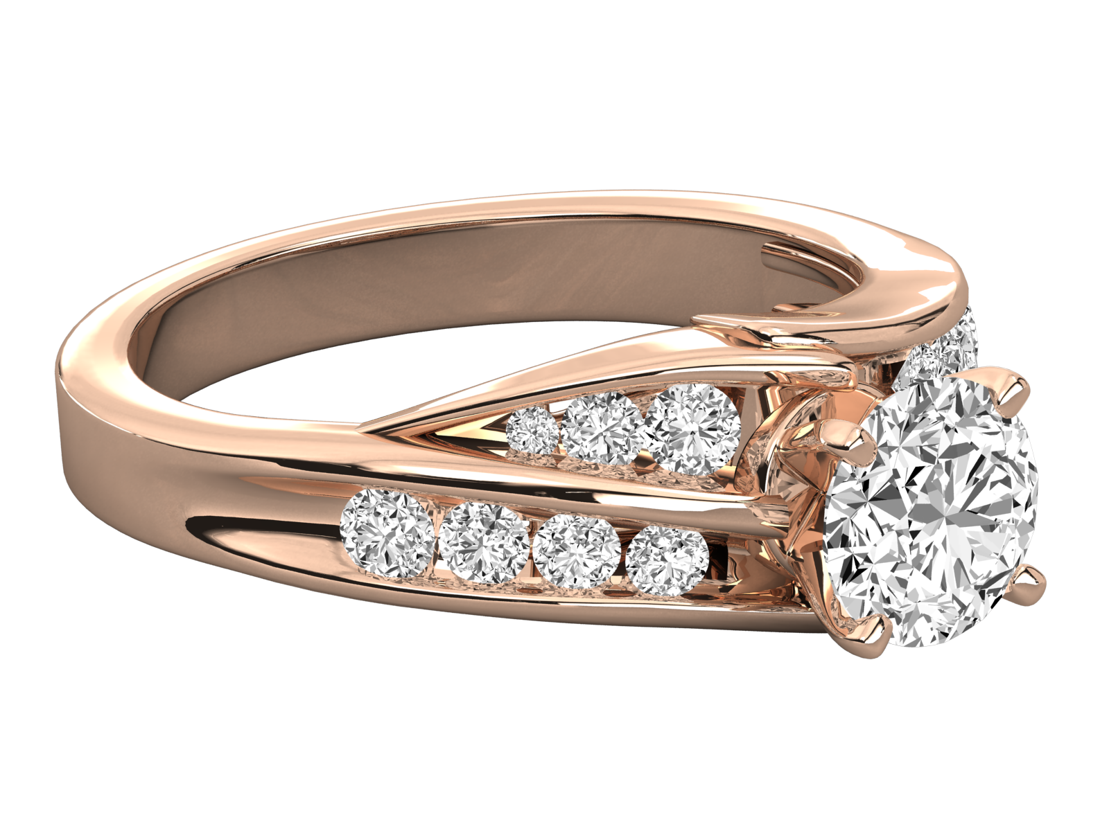 This rose gold engagement ring features a brilliant round center diamond set on an elegant split shank band. Accented with dazzling pave-set side stones, its double-row design offers a luxurious sparkle and unique modern flair. Perfect for engagements, promises, or anniversaries, this ring radiates romance, beauty, and timeless sophistication.