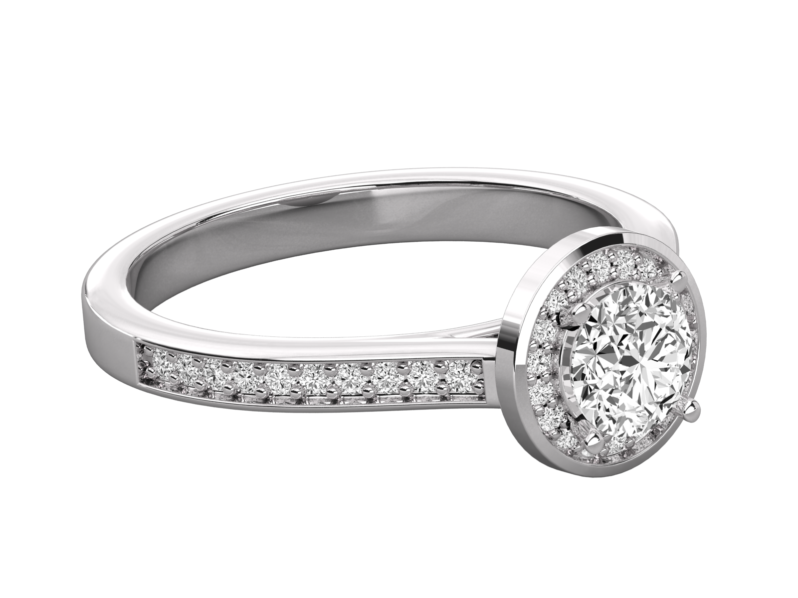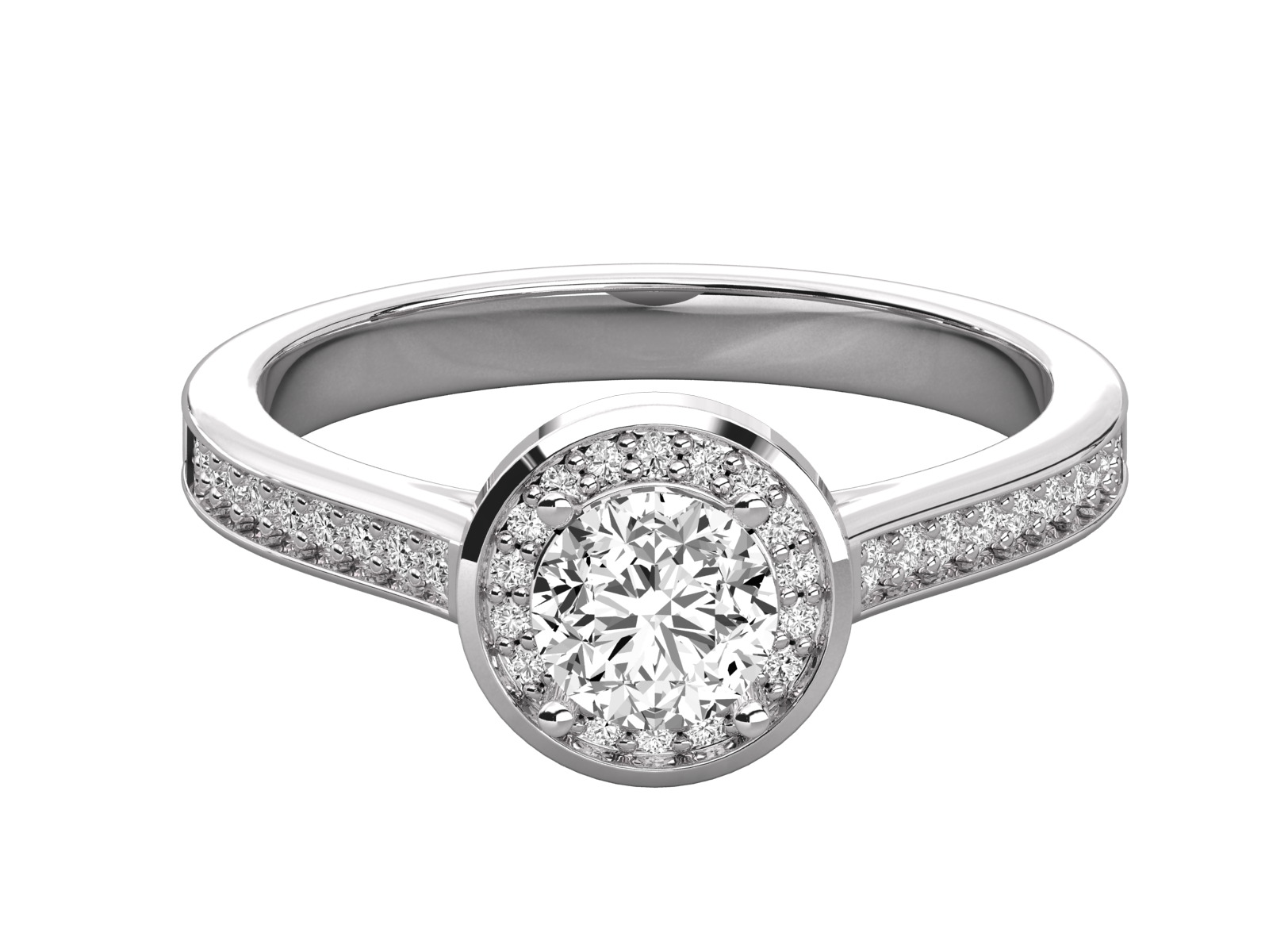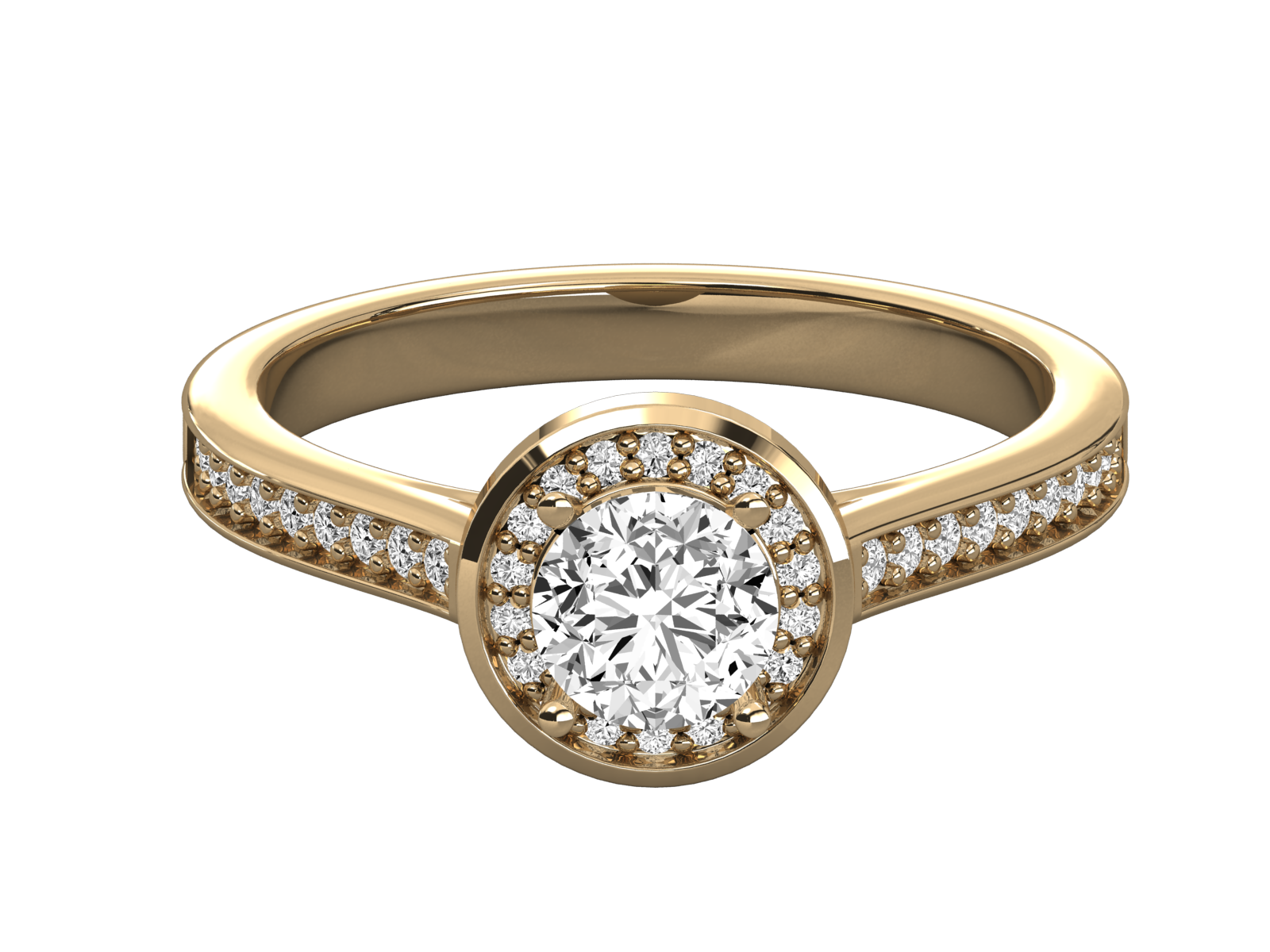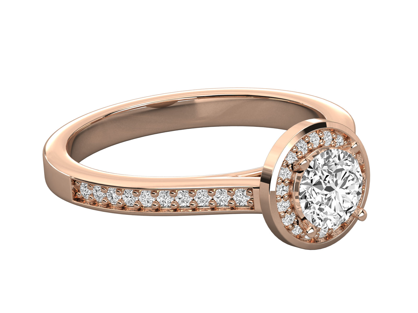 This stunning bezel halo engagement ring features a round brilliant diamond encircled by a halo of pavé-set stones, set in romantic rose gold. A secure yet elegant bezel setting offers modern flair with timeless sparkle. Delicate diamonds on the band complete this breathtaking design—perfect for a love that shines forever.