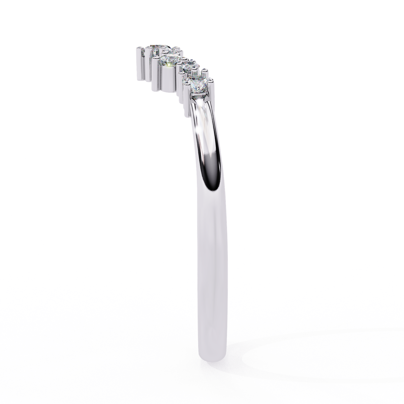 Delicate and modern, this chevron V ring features a graceful curve adorned with brilliant round diamonds, set in radiant white gold. Perfect as a wedding band, stackable ring, or standalone piece, it adds a touch of sparkle and sophistication to any look. A timeless beauty with a contemporary twist.