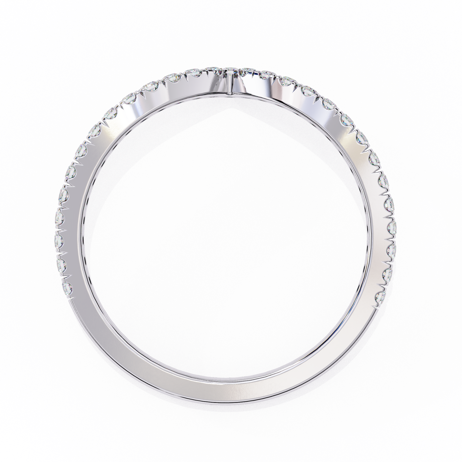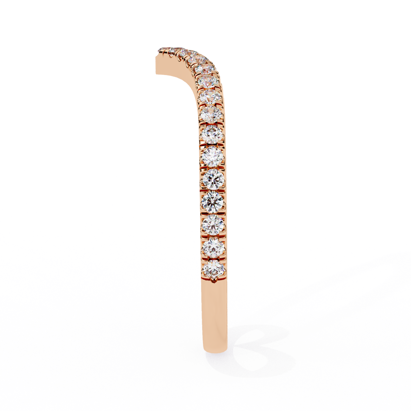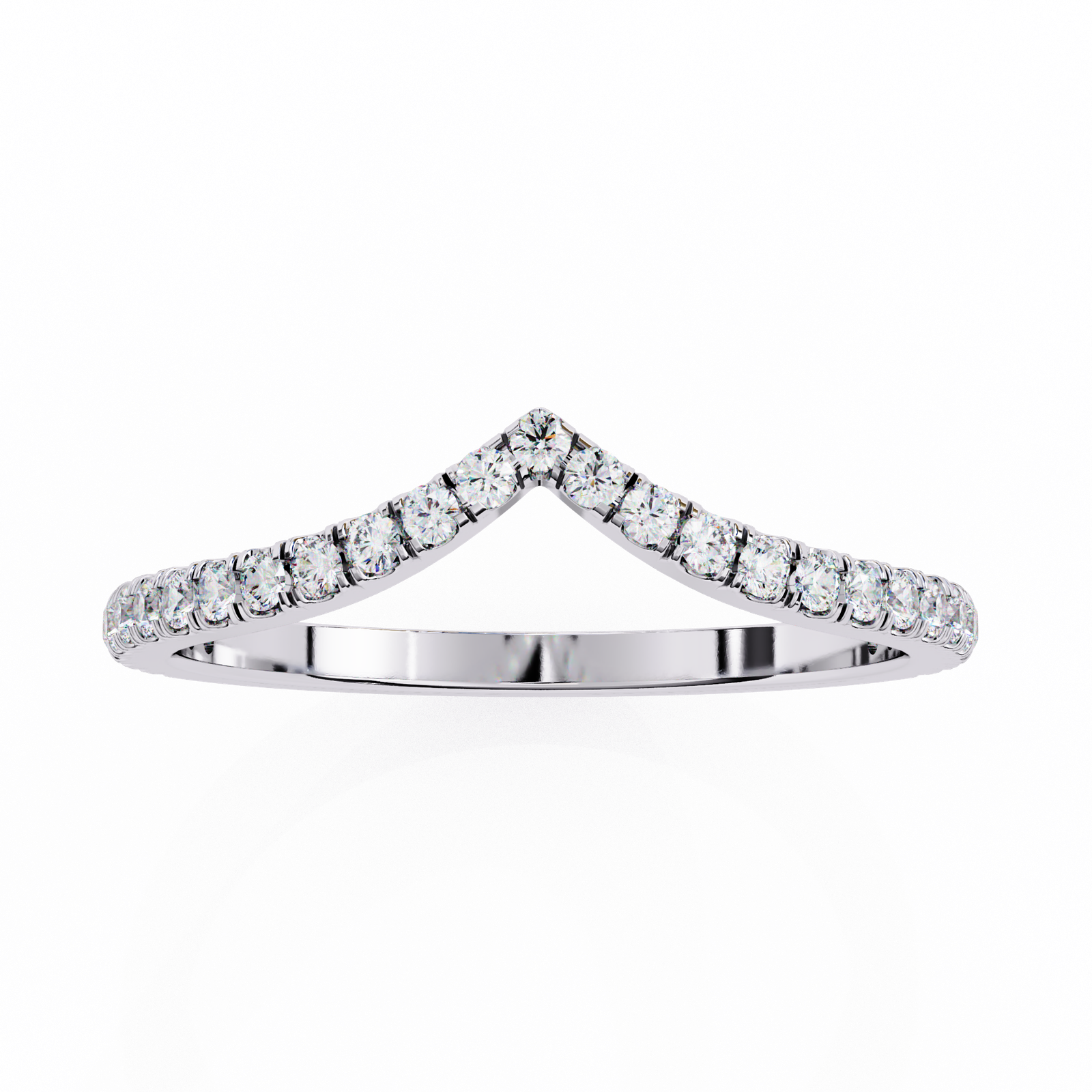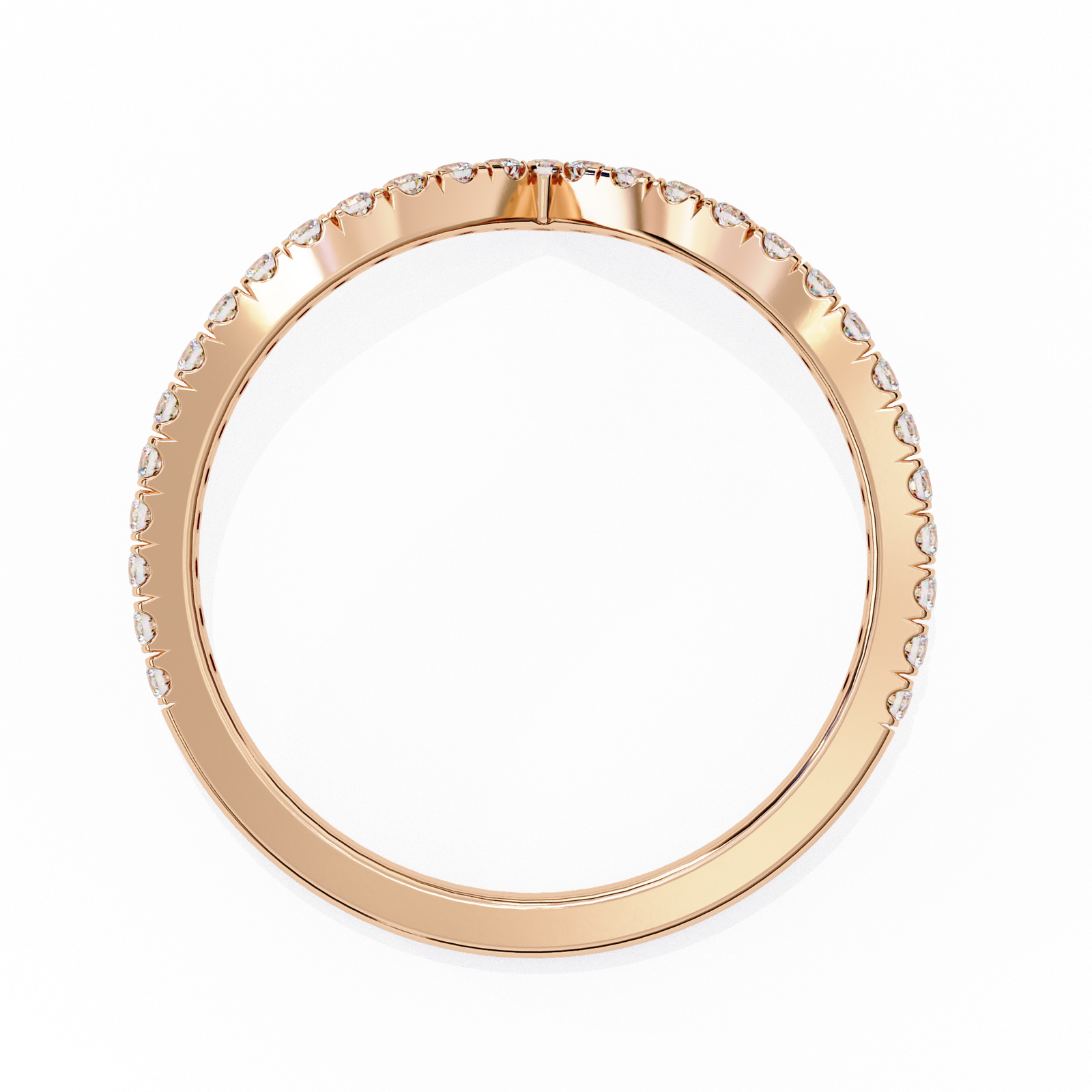 This chevron band features a sleek V-shaped design adorned with brilliant round diamonds, set in warm rose gold. Perfect for stacking, pairing with an engagement ring, or wearing solo, this ring adds a touch of sparkle and sophistication to any jewelry collection with timeless grace.