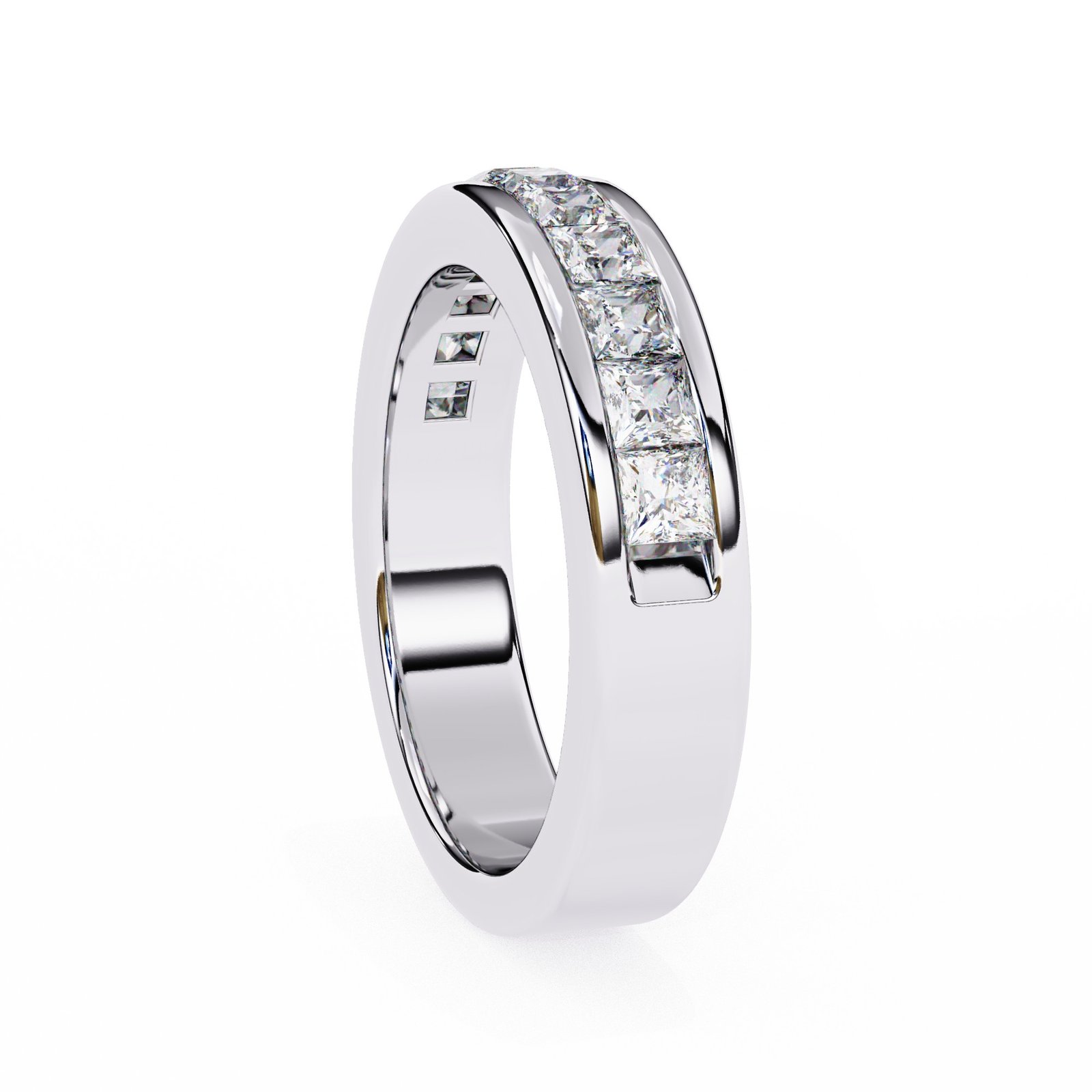 This elegant band features princess-cut diamonds seamlessly channel-set in a sleek yellow gold band. The geometric precision of each stone creates a modern, refined look with maximum sparkle and brilliance. Perfect as a wedding or anniversary ring, this design blends timeless sophistication with contemporary appeal for everyday luxury.