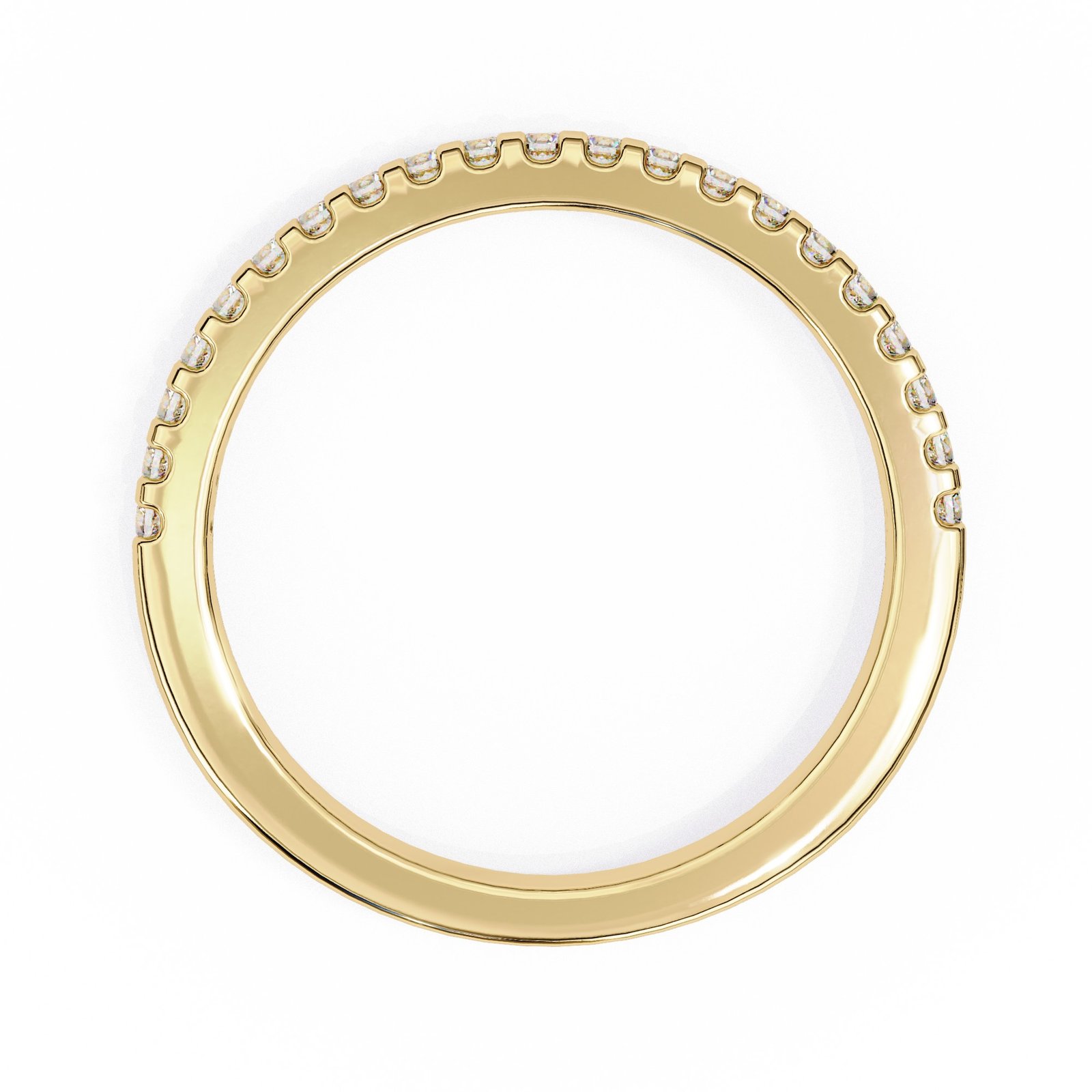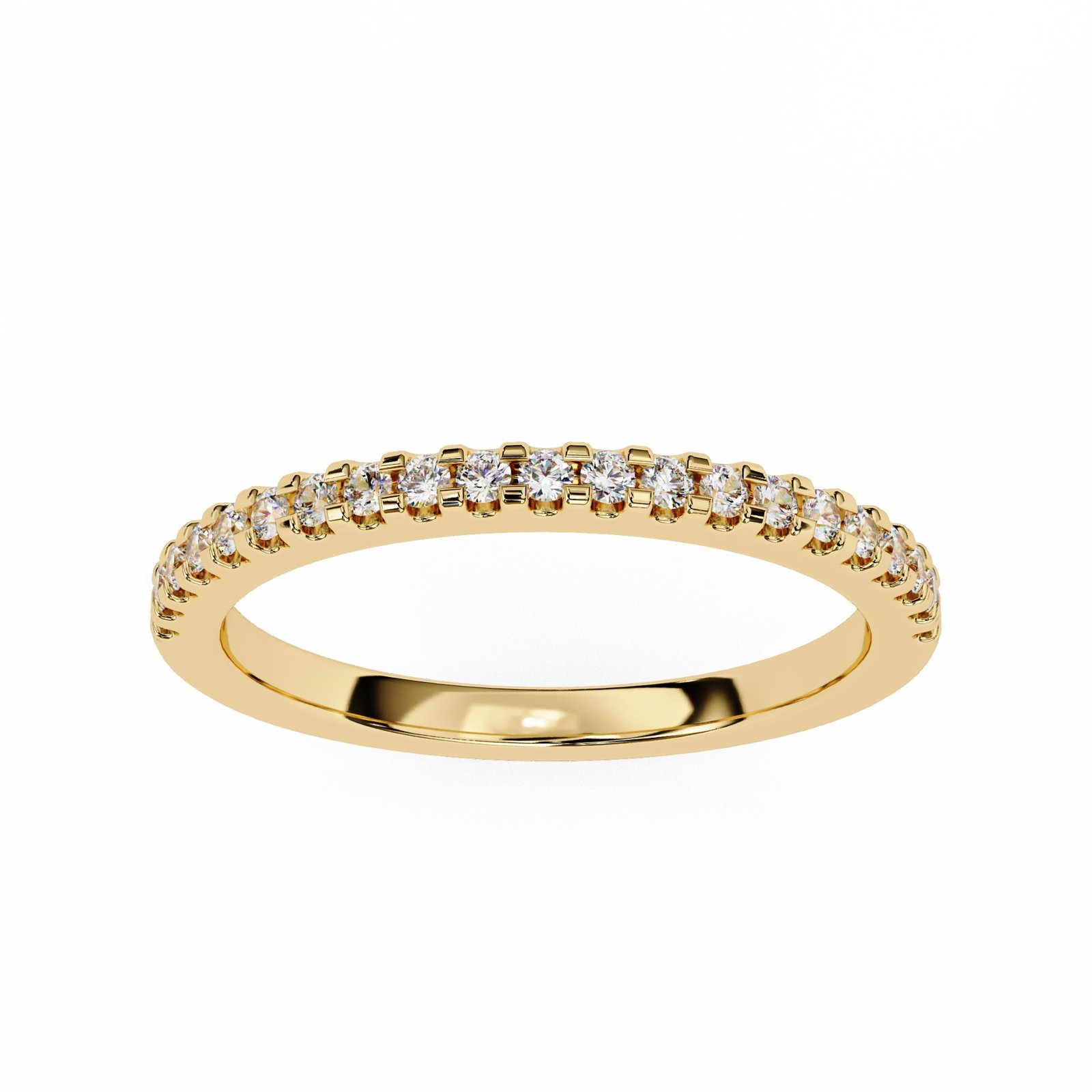This timeless eternity band features a full circle of round brilliant-cut diamonds set in rich yellow gold. The delicate prong setting enhances each diamond's sparkle, making it perfect for stacking, pairing with an engagement ring, or wearing solo for a touch of everyday elegance and refined luxury.