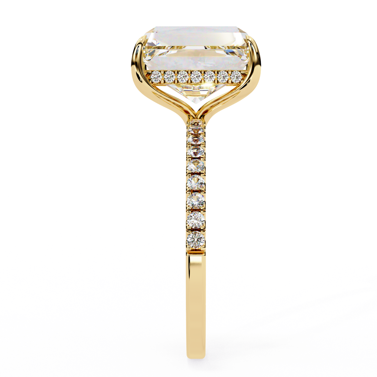 This stunning ring features a bold emerald-cut diamond, known for its sleek lines and timeless elegance. Set in a platinum band with pavé-set accent diamonds, it radiates sophistication and clarity. A perfect symbol of refined love, this ring is ideal for engagements or milestone celebrations.