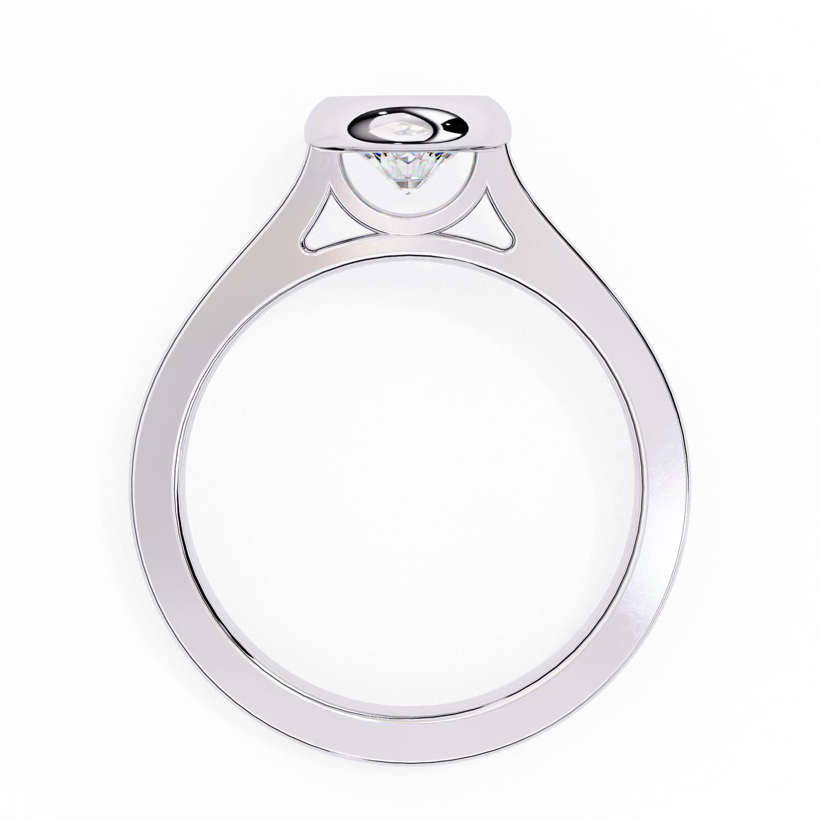 Modern minimalism meets timeless brilliance in this bezel-set round diamond ring. The radiant round-cut diamond is securely embraced by a polished metal bezel, offering both protection and a sleek contemporary look. The smooth band enhances the clean lines of the design, while the bezel setting allows the diamond to sparkle with understated elegance. Perfect for those who value simplicity, durability, and refined sophistication, this ring is as practical as it is breathtaking.