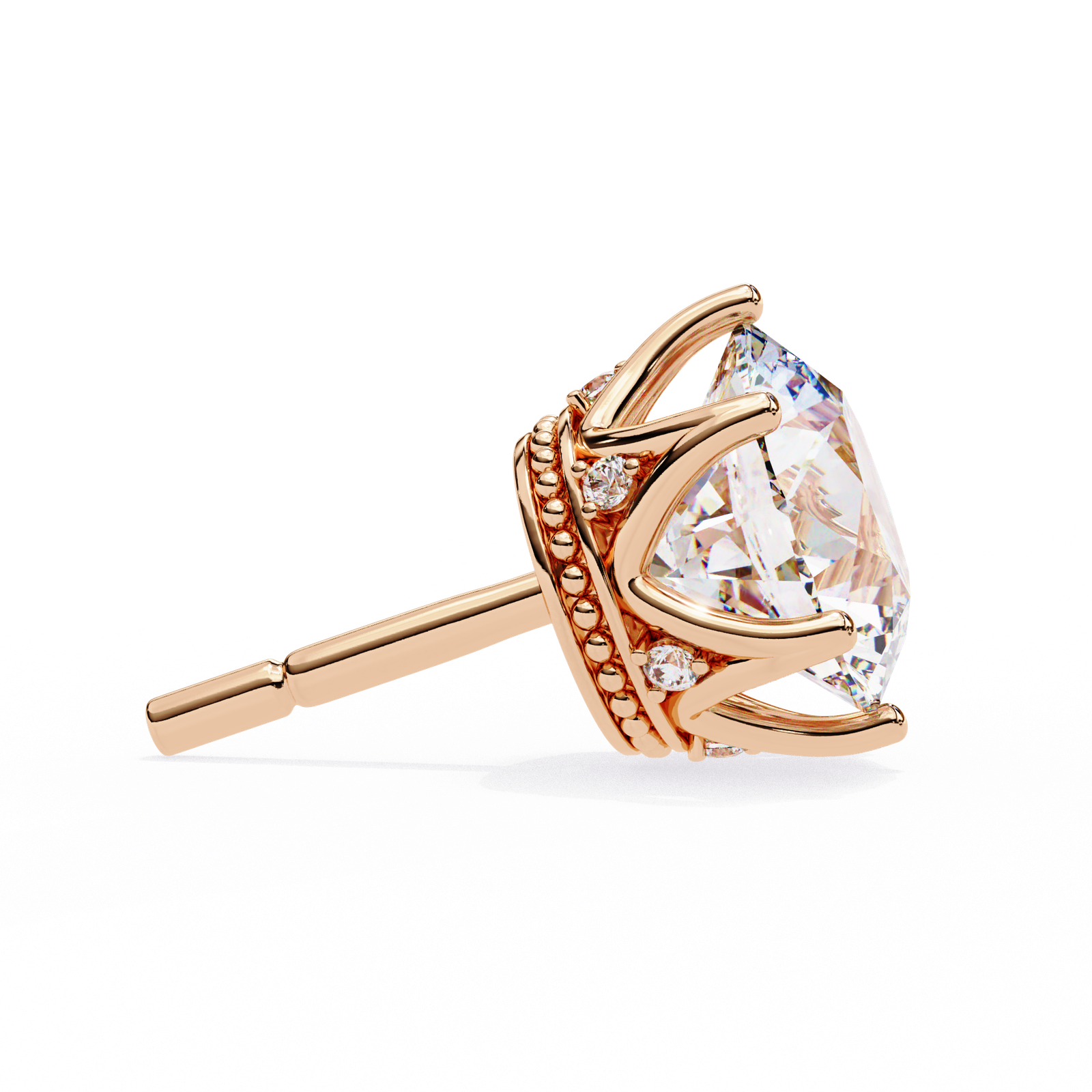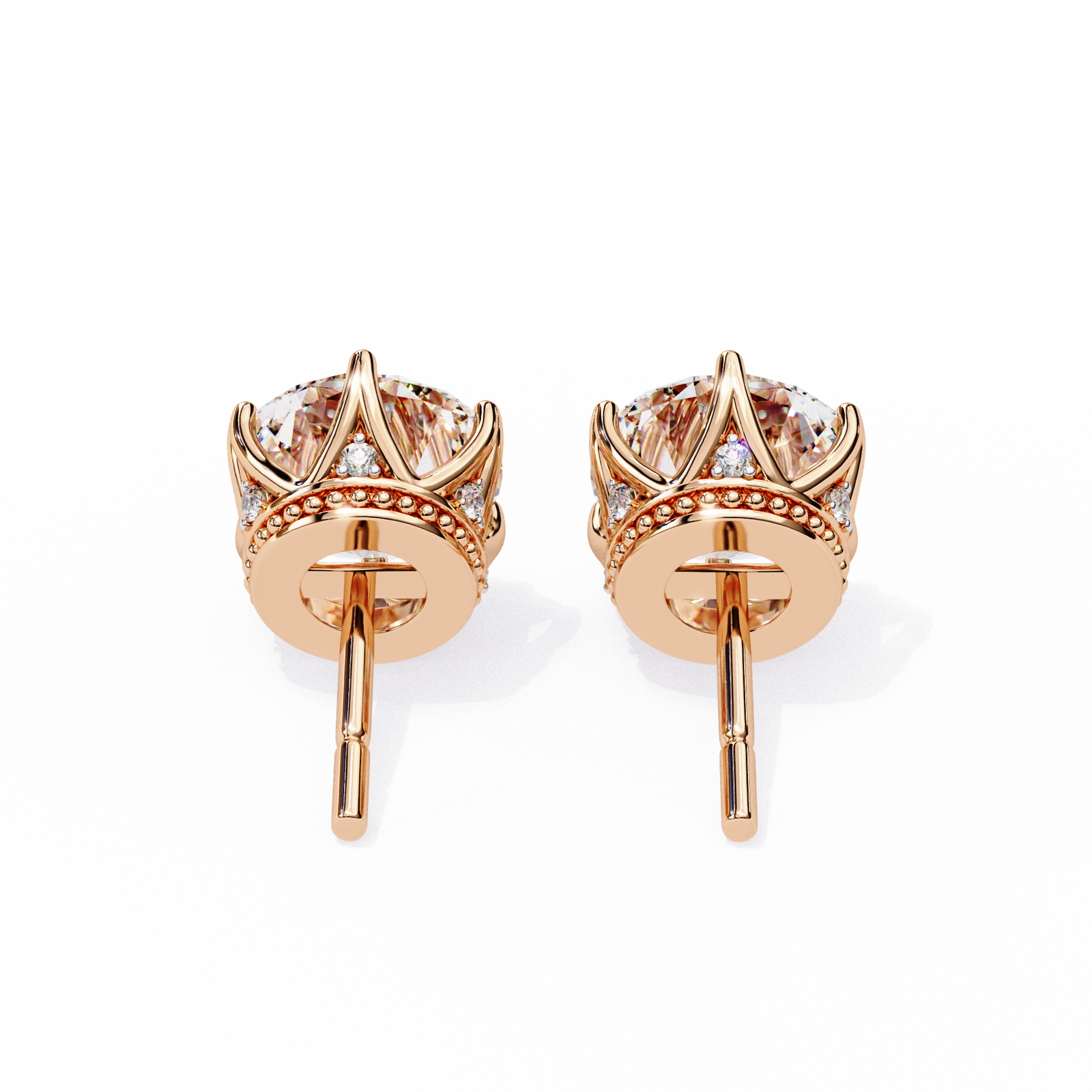 Experience the perfect blend of elegance and artistry with these Vintage-Inspired Round Diamond Stud Earrings. Featuring a brilliant round-cut diamond set in a secure six-prong setting, these studs showcase a beautifully detailed gallery with delicate milgrain and pav? accents for an added touch of sophistication. Crafted in premium white gold or platinum, these earrings are ideal for those who appreciate timeless beauty with a vintage flair.
