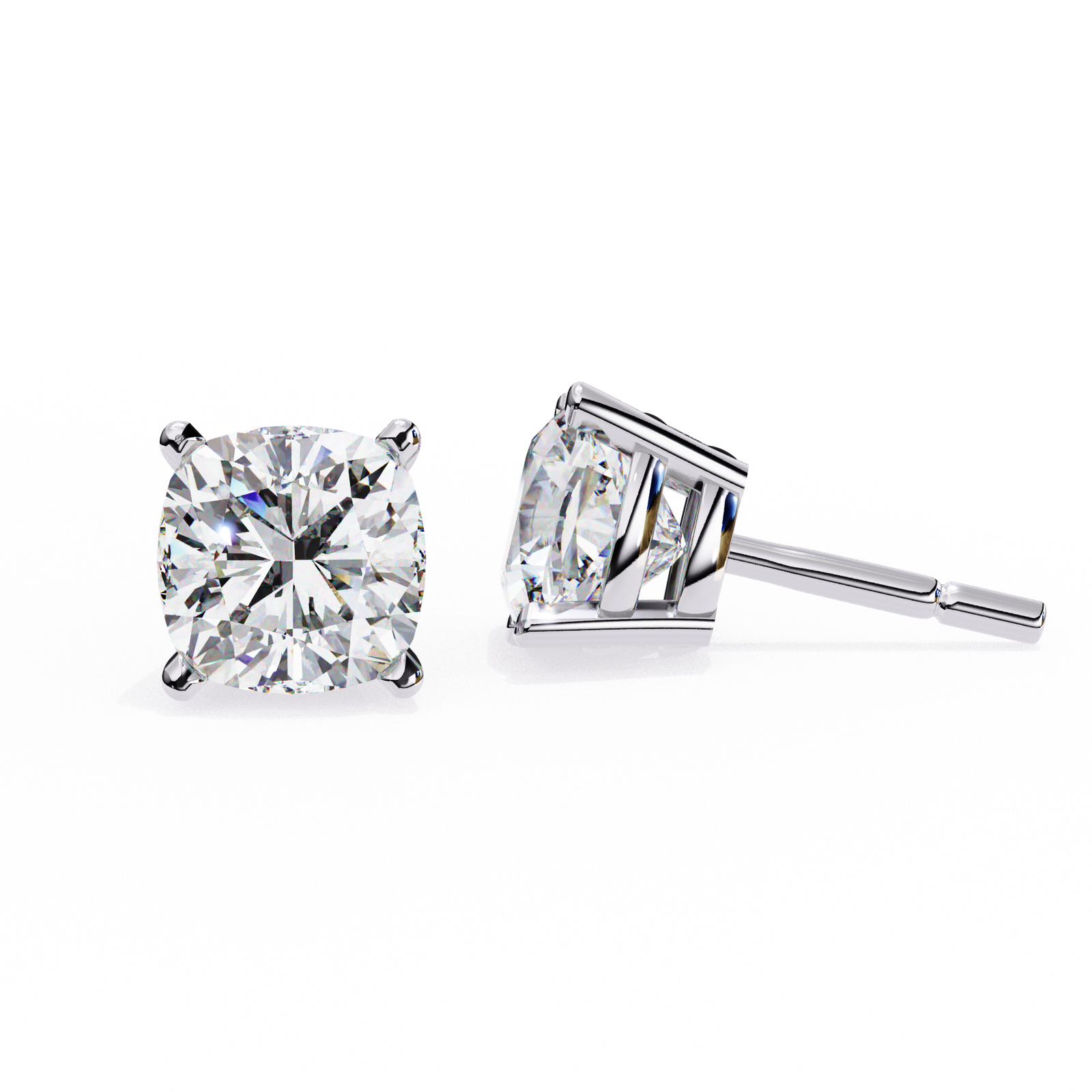 Radiate sophistication with these Cushion Cut Diamond Stud Earrings. Featuring cushion-shaped diamonds that blend the brilliance of a round cut with the elegance of a square shape, these earrings are set in a secure four-prong basket setting. Crafted from premium white gold or platinum, they offer a modern yet timeless look, perfect for everyday wear or special occasions.