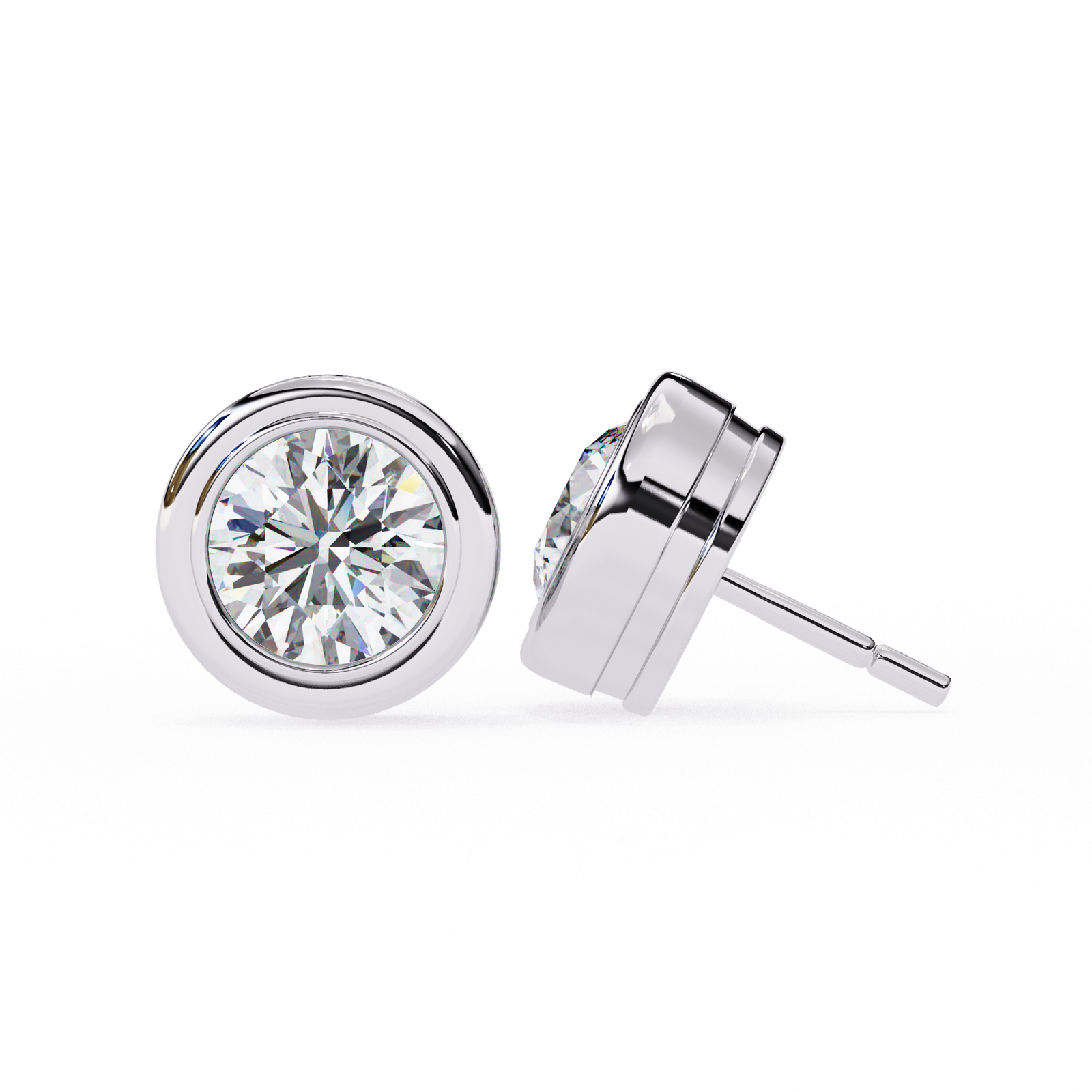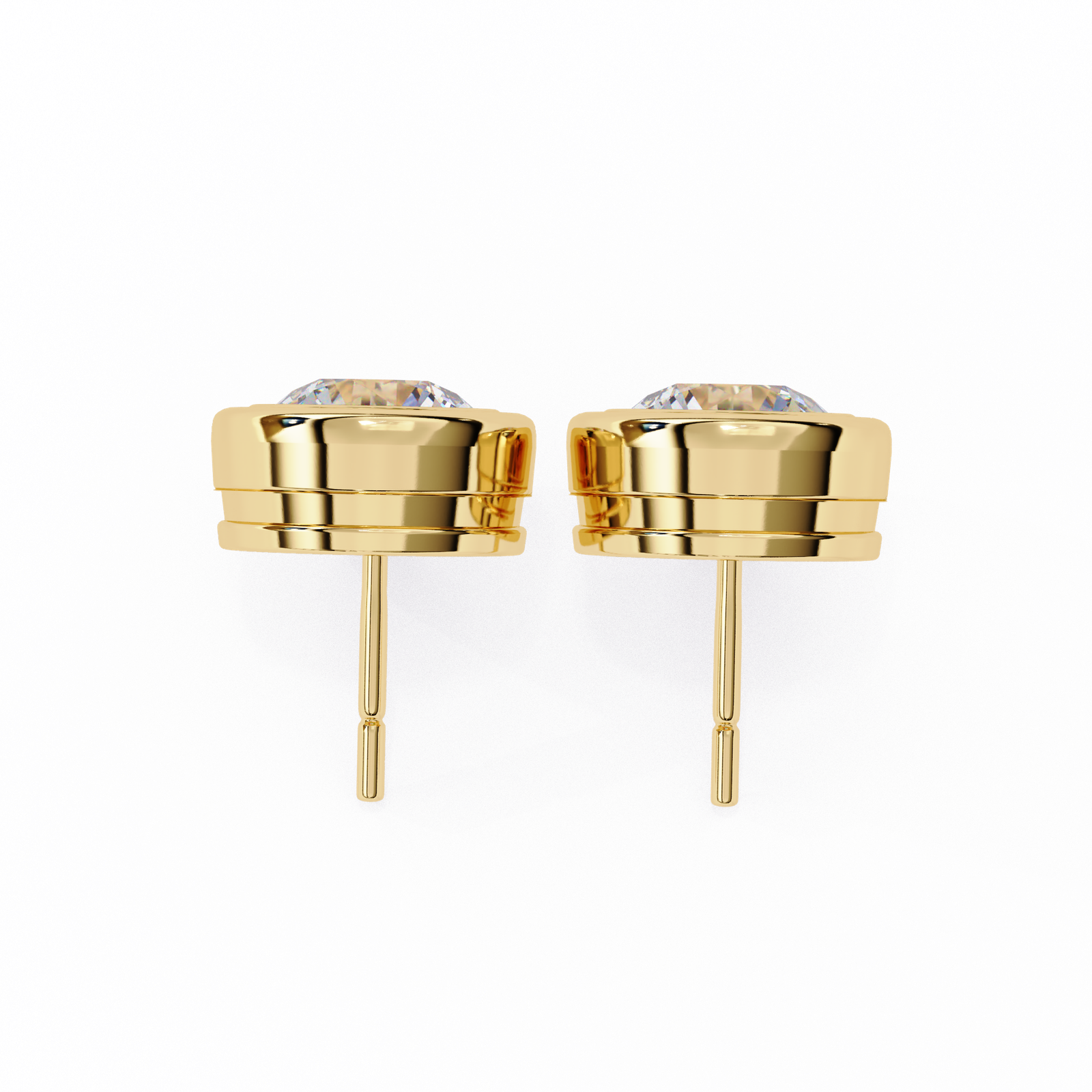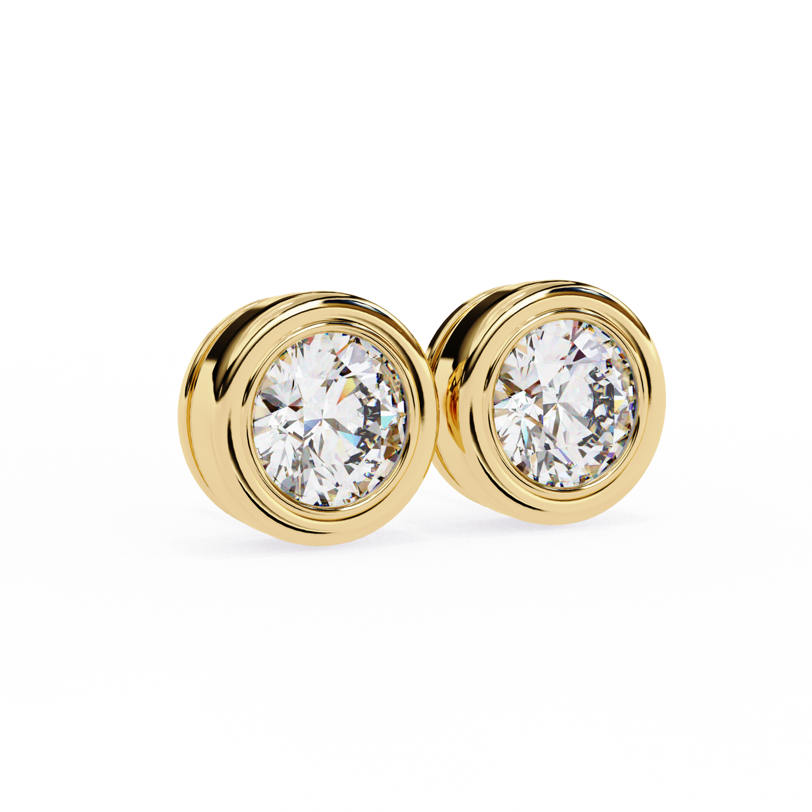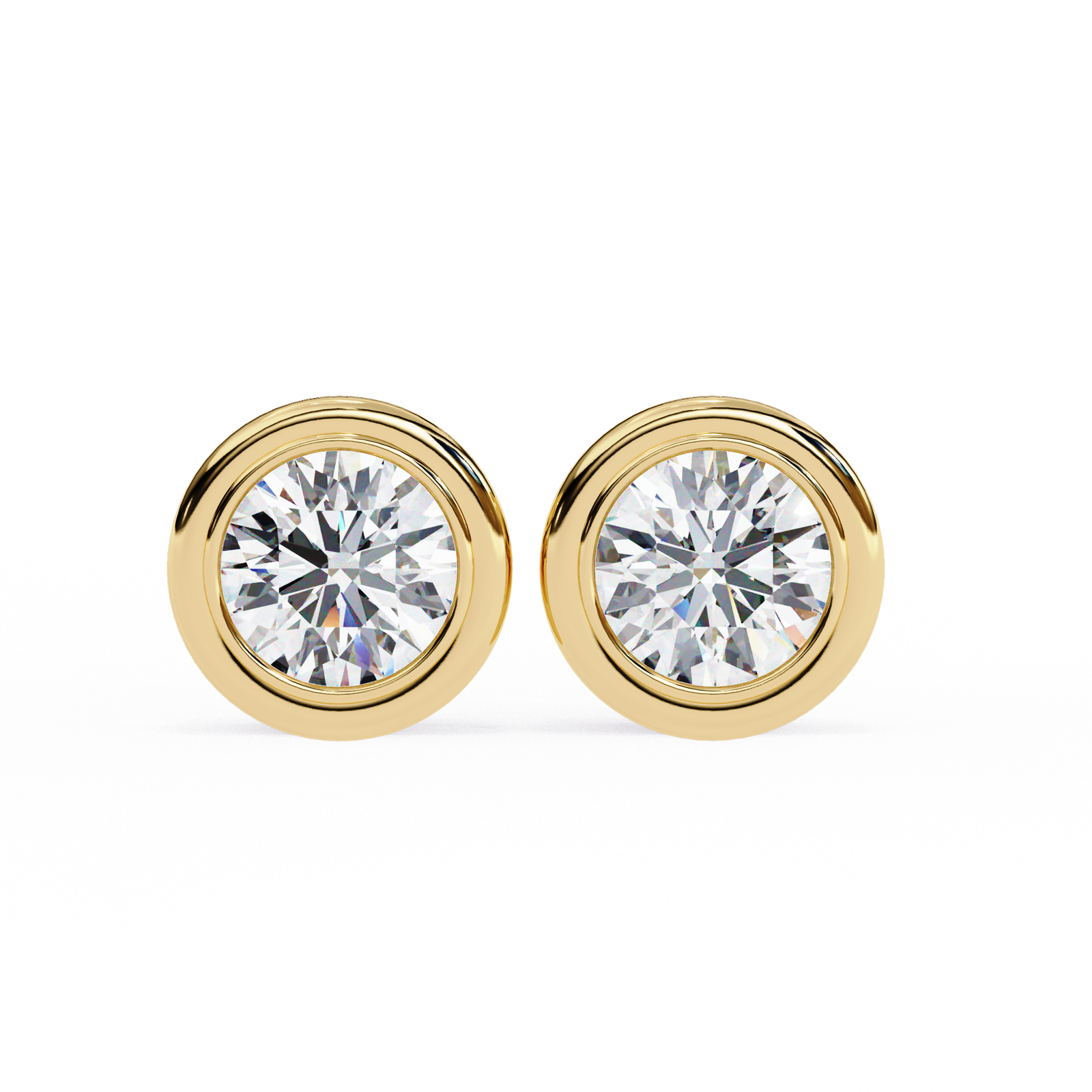 These timeless round diamond stud earrings feature a sleek bezel setting that surrounds each diamond, creating a sophisticated and modern look. The bezel setting not only enhances the stone's brilliance but also provides added protection, making these earrings both beautiful and durable. Perfect for any occasion, these earrings offer a refined touch of elegance that complements any style. Ideal for everyday wear or special celebrations, they make a thoughtful and lasting gift.