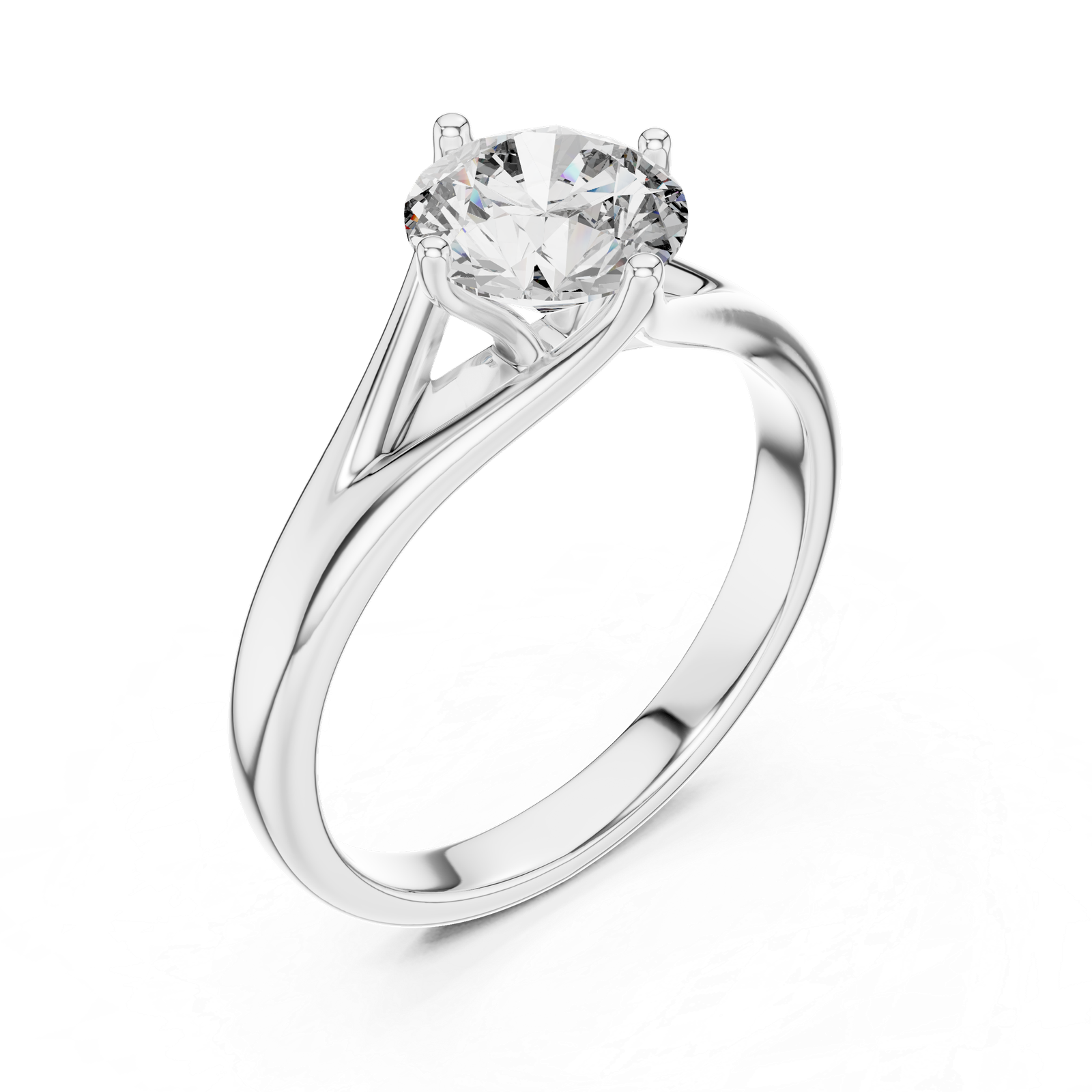 Elegant and contemporary, this Gold Solitaire Engagement Ring features a captivating round brilliant-cut diamond set in a secure four-prong setting. The band showcases a refined split shank design, drawing the eye toward the center stone while adding dimension and modern flair.