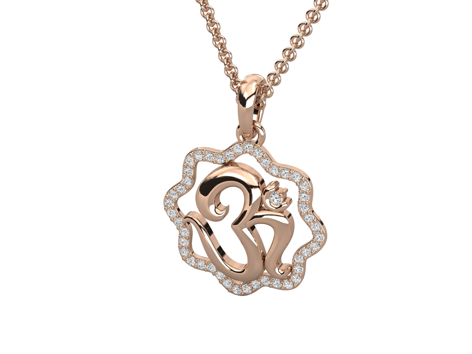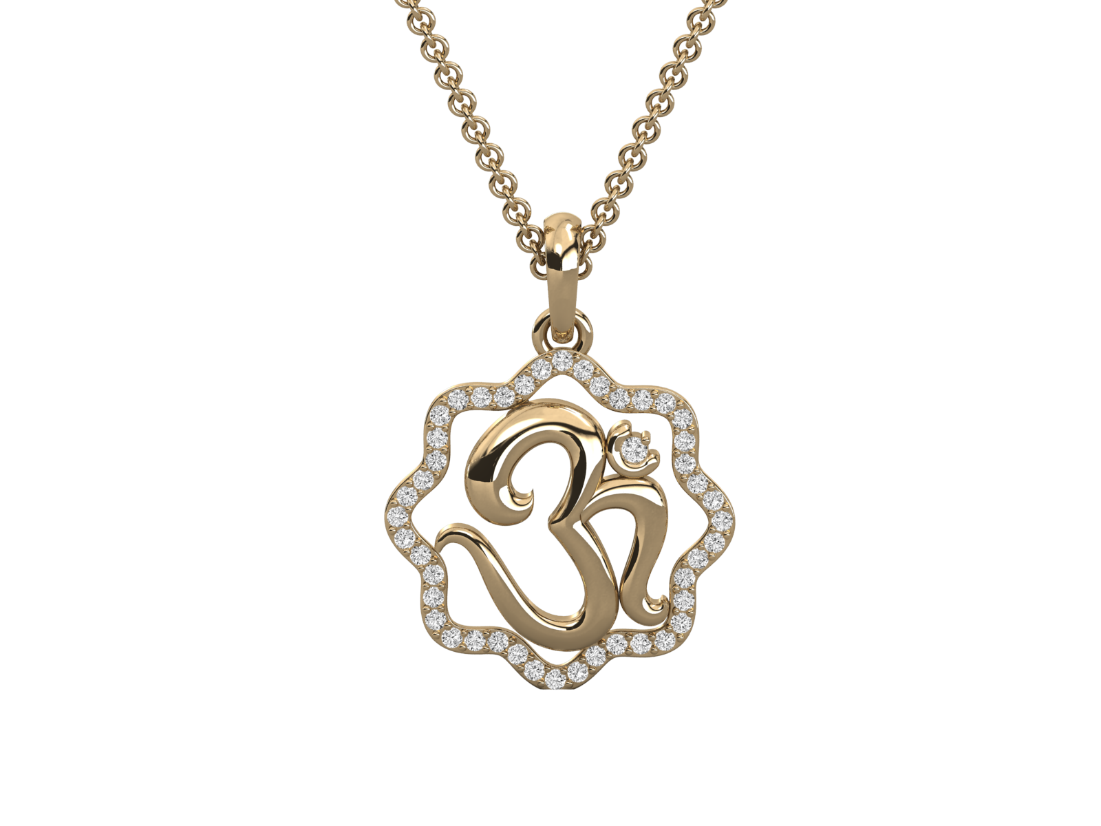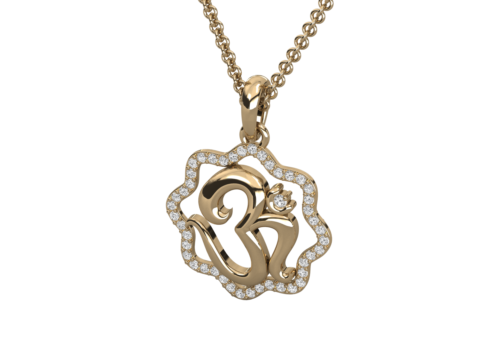 This divine pendant showcases a beautifully sculpted Om symbol encased in a lotus-inspired diamond-studded frame. Crafted in radiant yellow gold, it blends spiritual grace with luxurious elegance. Perfect for daily wear or gifting, this pendant embodies peace, purity, and timeless devotion in a refined, contemporary design. A truly meaningful treasure.