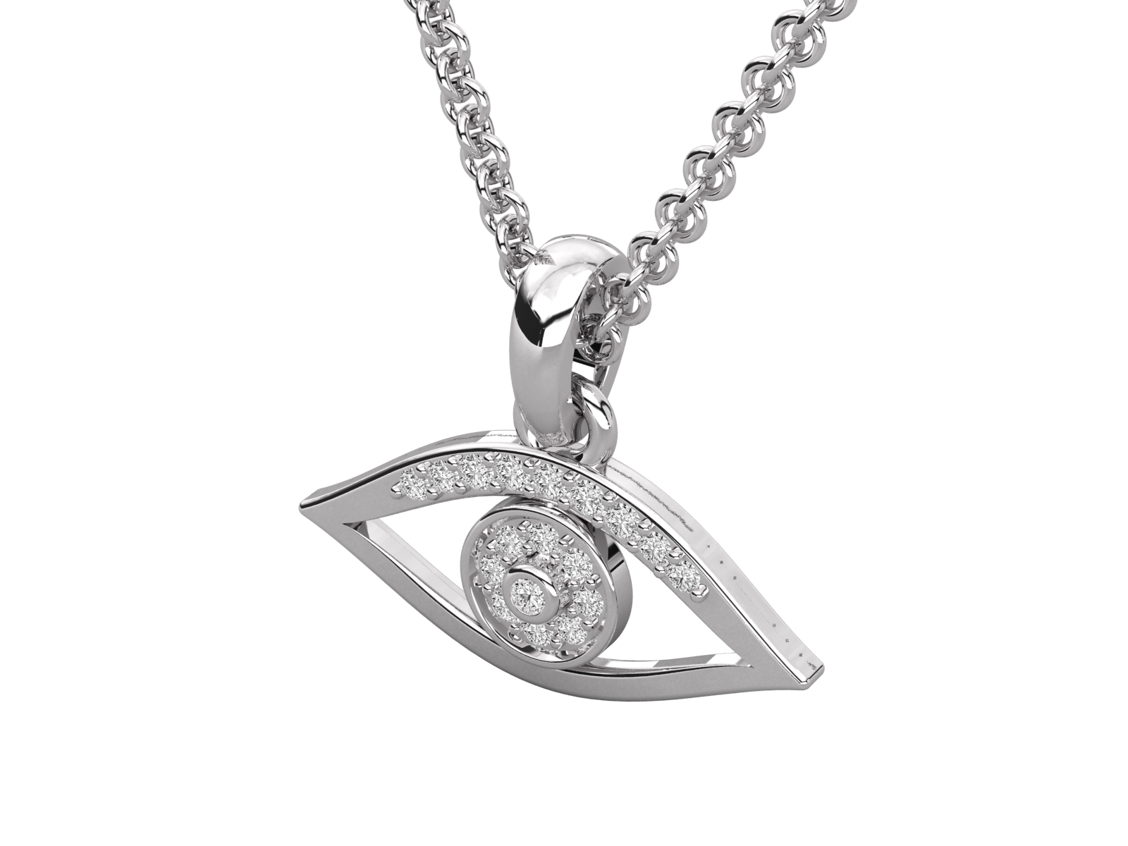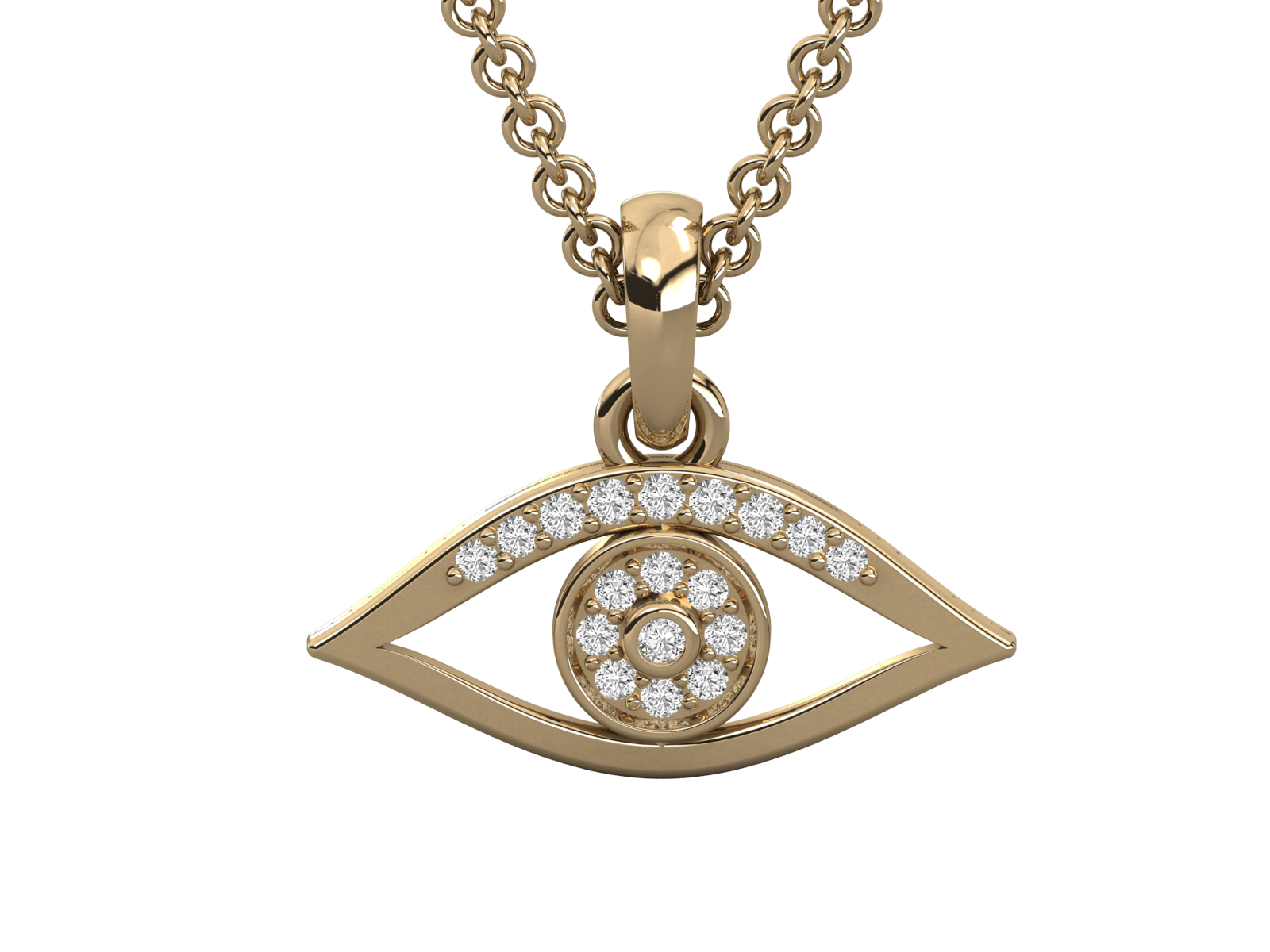 This dazzling evil eye pendant is adorned with brilliant diamonds, symbolizing protection and positive energy. Its modern yet meaningful design makes it perfect for daily wear or as a thoughtful gift. Shield yourself from negativity with this timeless charm that blends tradition with contemporary elegance.
