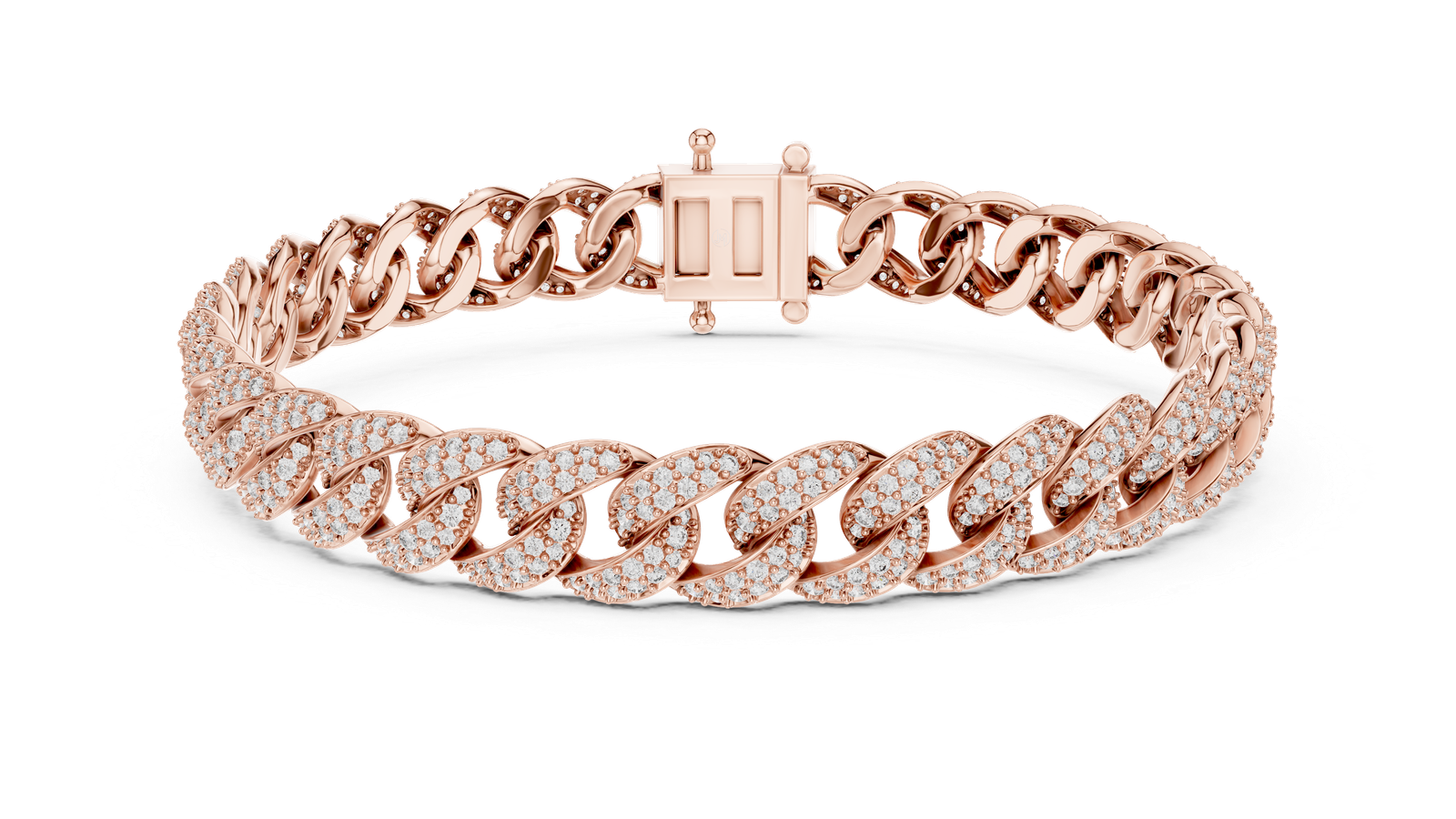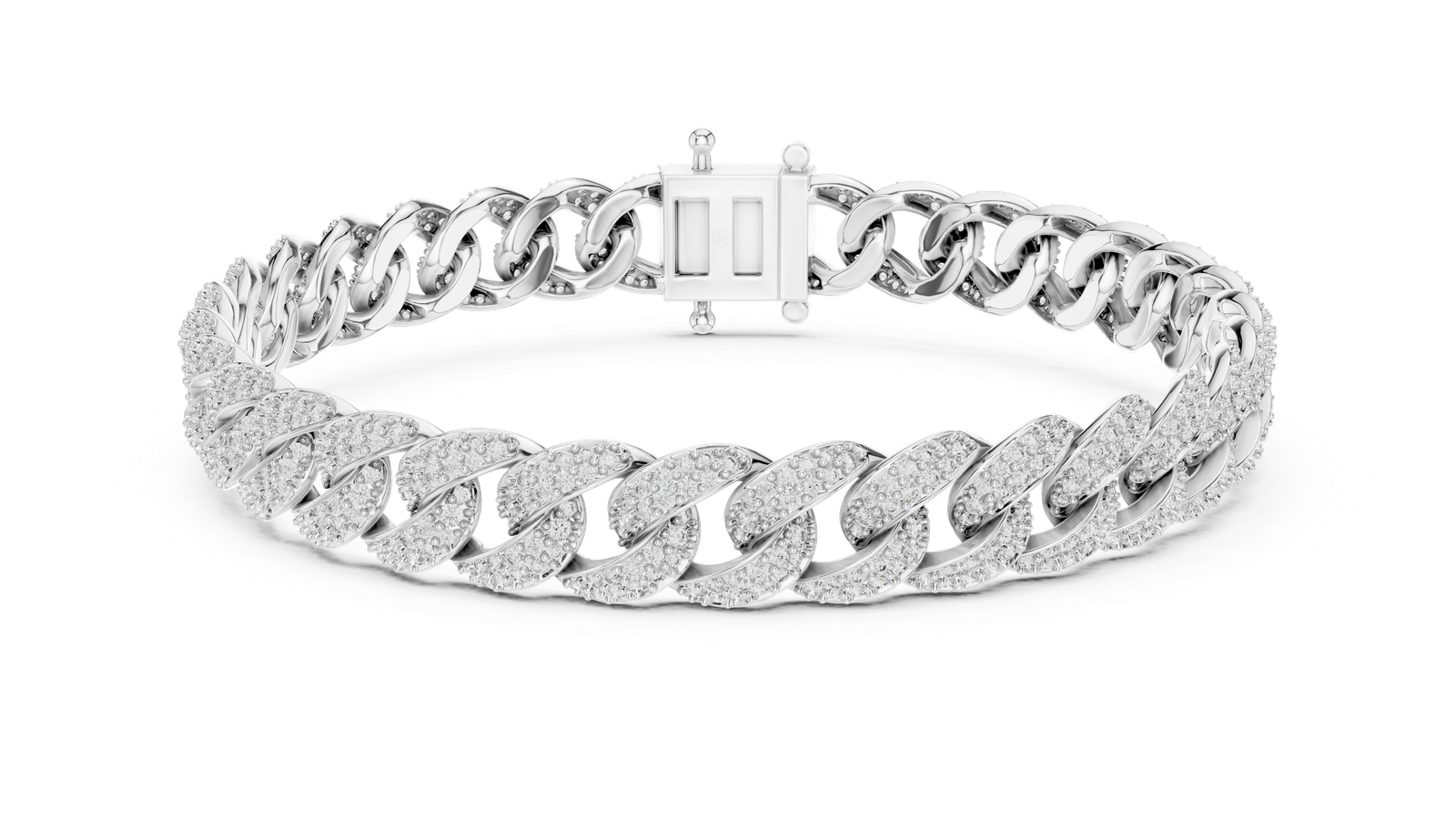 Make a statement with this striking 18K yellow gold Cuban link bracelet, iced out with rows of pav?-set round brilliant diamonds. Each generously sized link is meticulously polished and encrusted to deliver maximum shine and urban sophistication. Designed for those who appreciate bold luxury, this piece combines streetwear edge with fine jewelry craftsmanship. Finished with a secure box clasp and safety closures for confident wear. Material: Gold Gemstone: Round Brilliant-Cut Diamonds (Pav? Set) Design: Cuban Link / Curb Chain Clasp Type: Box Clasp with Dual Safety Locks Style: Bold, Contemporary, Urban Luxe Occasion: Statement Piece, Special Events, Celebrations, Gifting