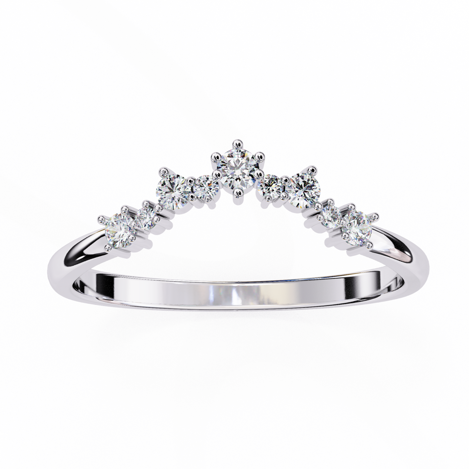 Delicate and modern, this chevron V ring features a graceful curve adorned with brilliant round diamonds, set in radiant white gold. Perfect as a wedding band, stackable ring, or standalone piece, it adds a touch of sparkle and sophistication to any look. A timeless beauty with a contemporary twist.