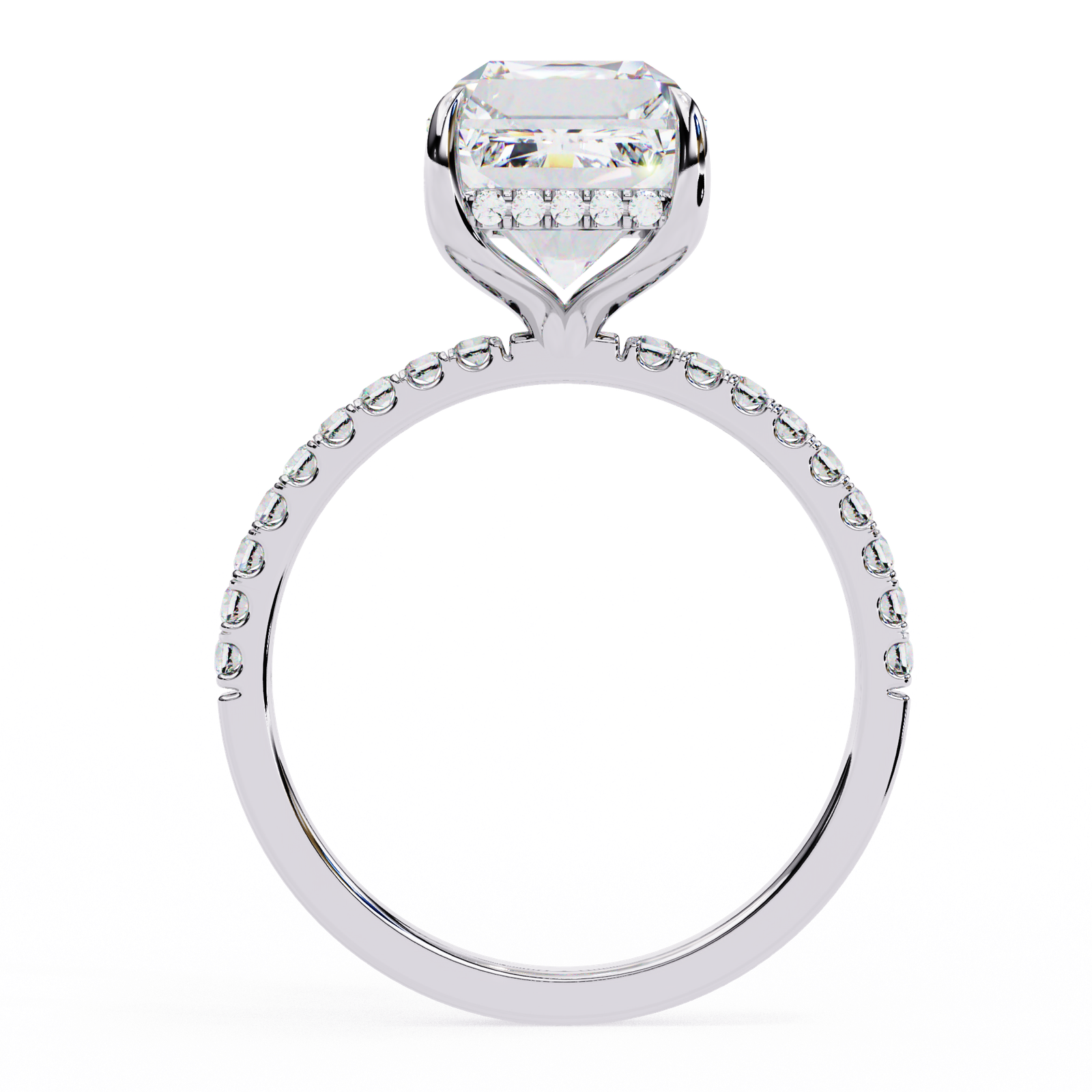 This stunning ring features a bold emerald-cut diamond, known for its sleek lines and timeless elegance. Set in a platinum band with pavé-set accent diamonds, it radiates sophistication and clarity. A perfect symbol of refined love, this ring is ideal for engagements or milestone celebrations.