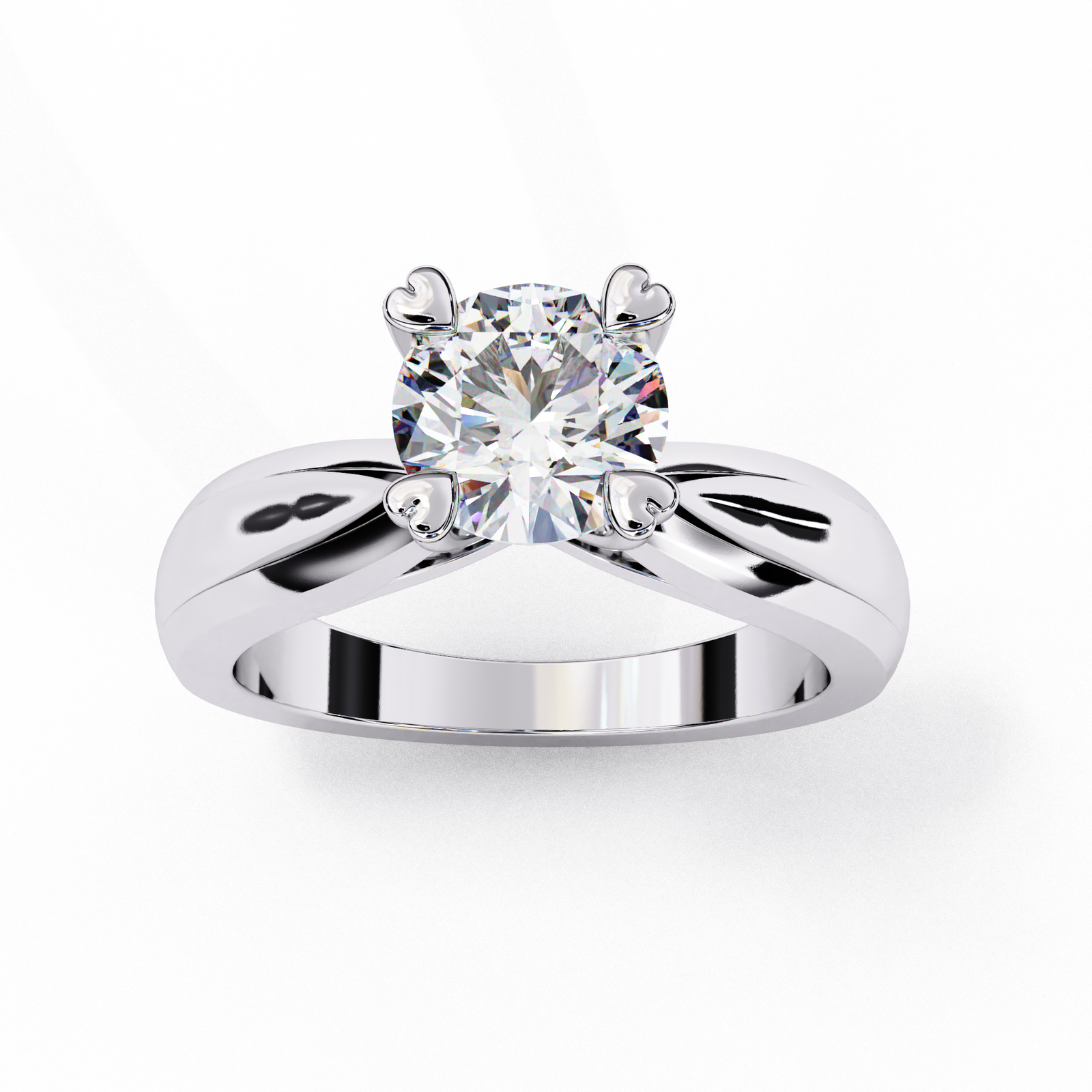 Crafted to captivate, this striking engagement ring features a brilliant round diamond secured by six gold prongs, perfectly contrasted against a polished gold band. The split shank design adds a touch of elegance, making it an ideal choice for those who appreciate timeless beauty with a bold, graceful flair.