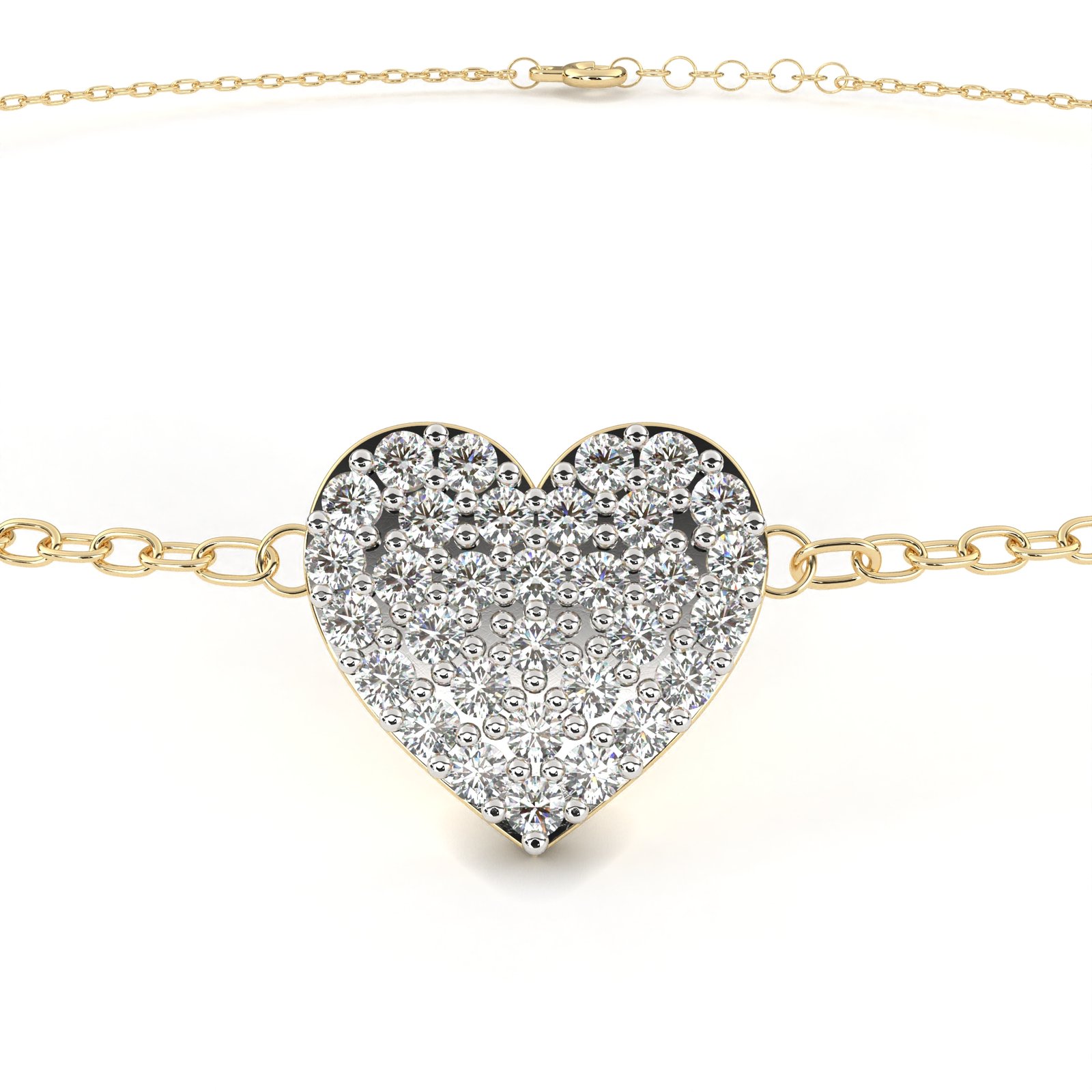 This charming heart-shaped bracelet, encrusted with brilliant diamonds and set in radiant yellow gold. Its delicate chain and dazzling centerpiece create a timeless piece that’s perfect for everyday elegance or romantic occasions. A heartfelt gift that sparkles with emotion and sophistication.