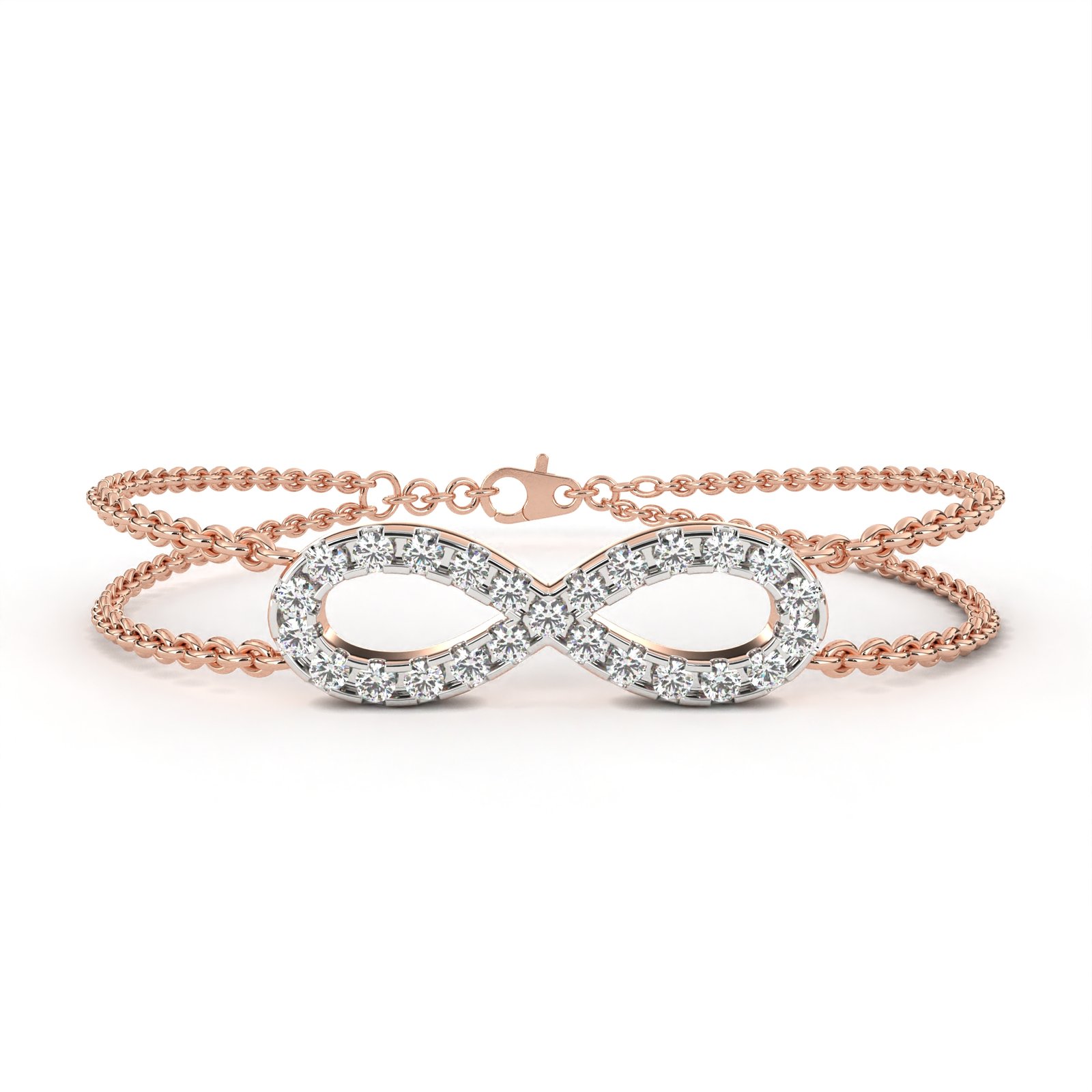 This dazzling infinity bracelet, crafted in radiant yellow gold and adorned with shimmering diamonds. The double-chain design adds strength and style, while the infinity symbol reflects timeless love and unity. Perfect for gifting or self-adornment, this piece blends meaning and sophistication effortlessly.