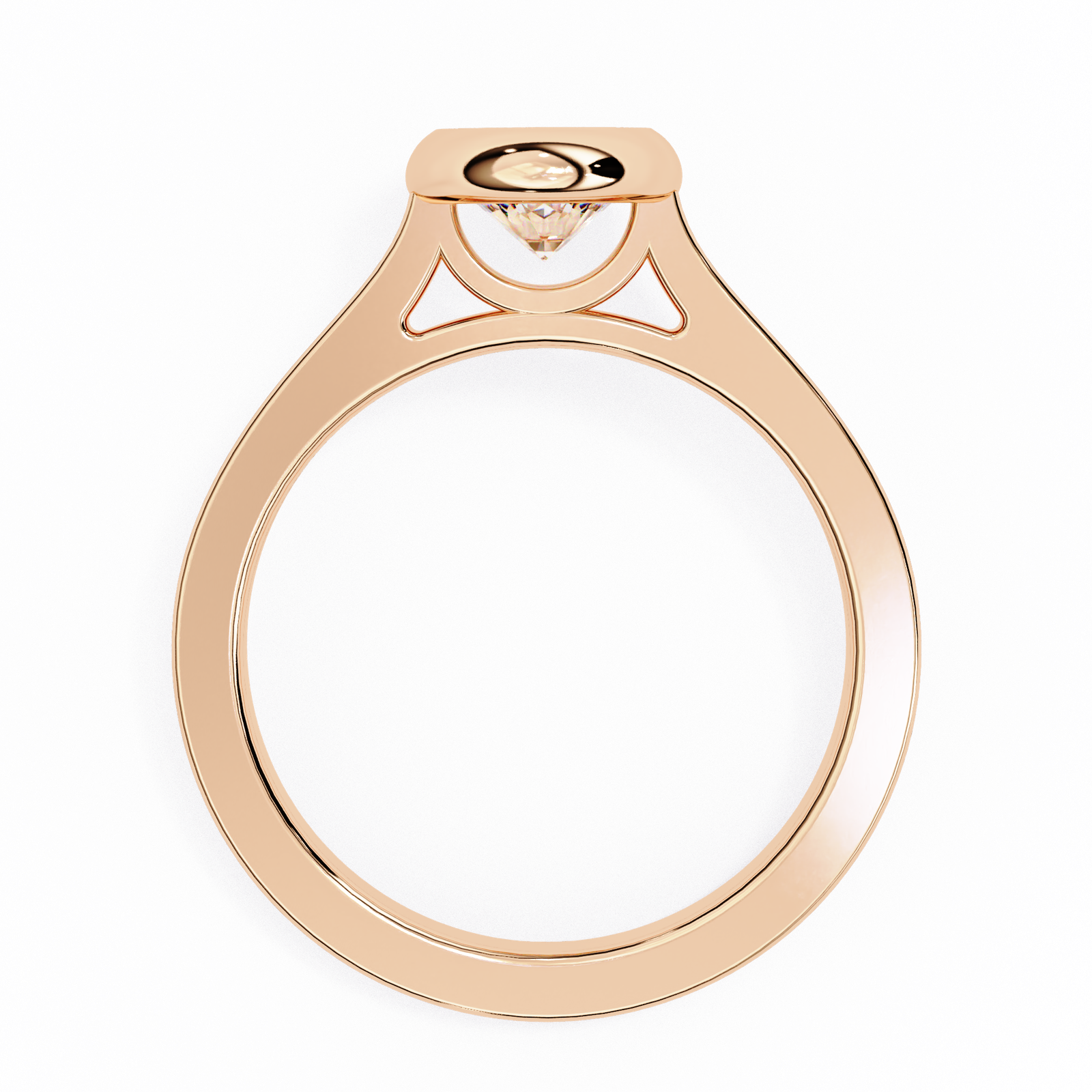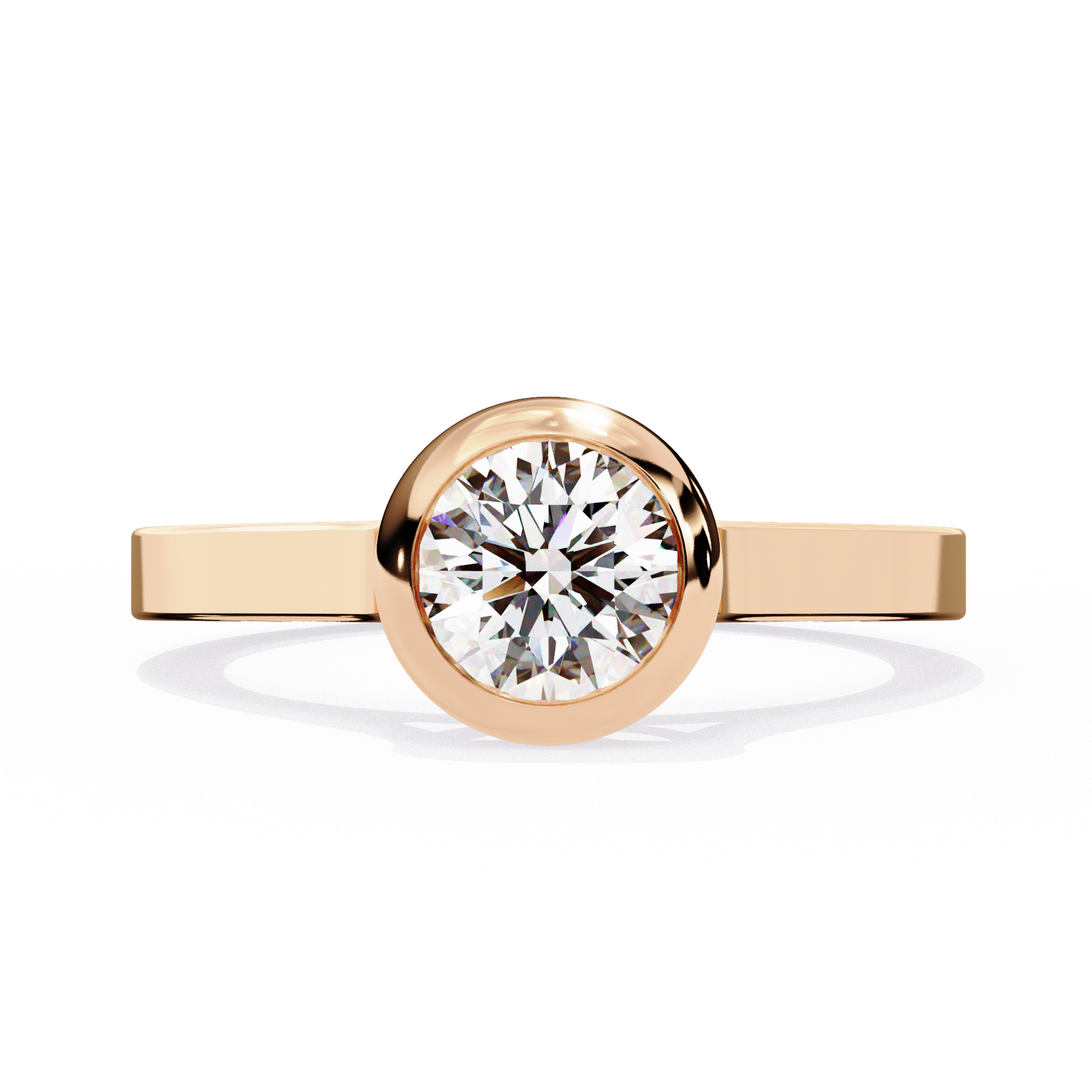 Modern minimalism meets timeless brilliance in this bezel-set round diamond ring. The radiant round-cut diamond is securely embraced by a polished metal bezel, offering both protection and a sleek contemporary look. The smooth band enhances the clean lines of the design, while the bezel setting allows the diamond to sparkle with understated elegance. Perfect for those who value simplicity, durability, and refined sophistication, this ring is as practical as it is breathtaking.