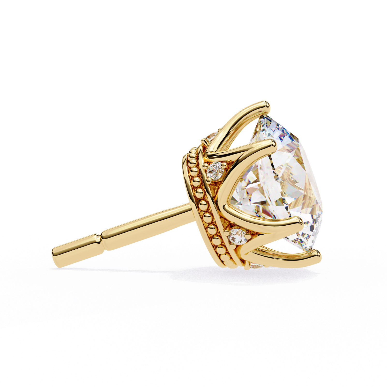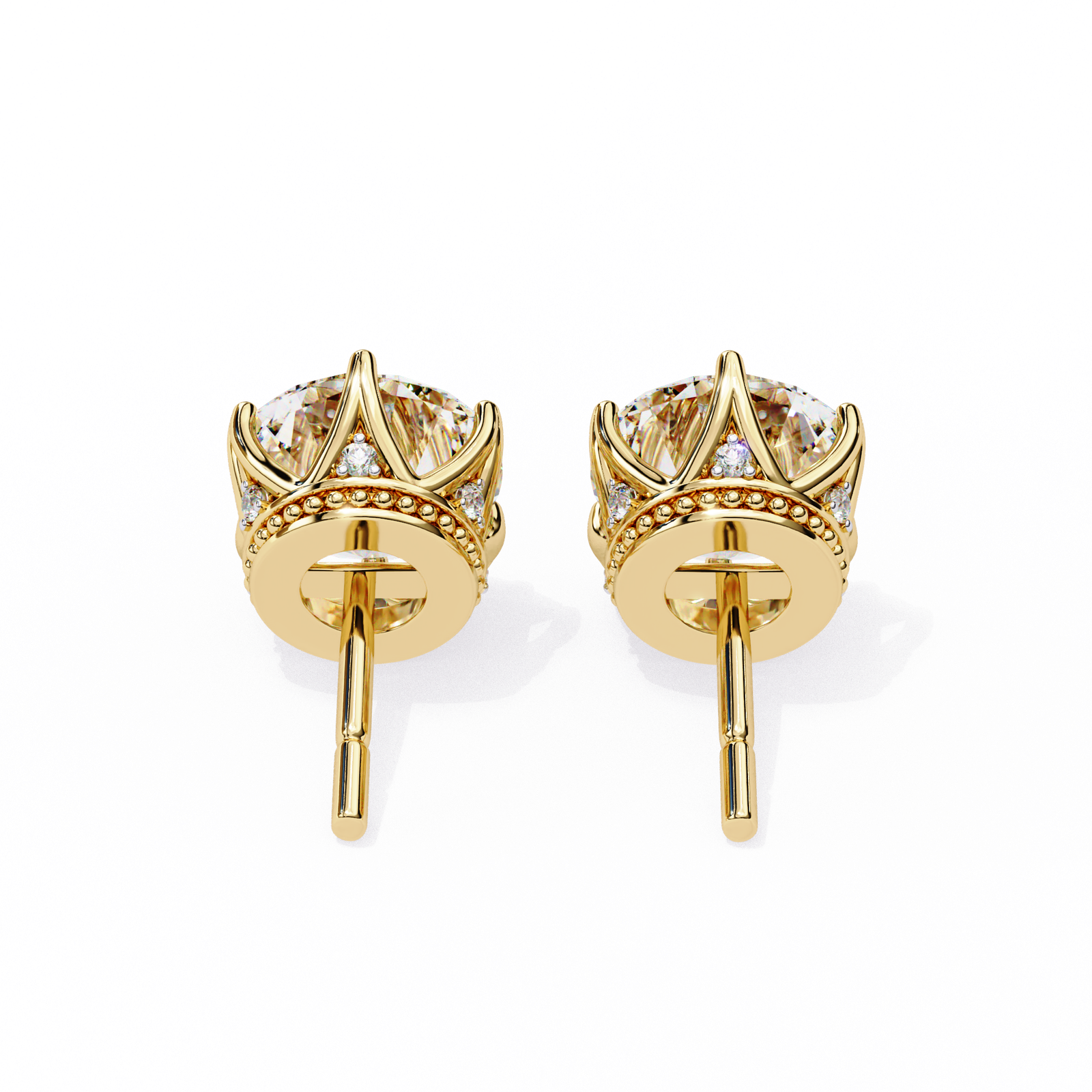 Experience the perfect blend of elegance and artistry with these Vintage-Inspired Round Diamond Stud Earrings. Featuring a brilliant round-cut diamond set in a secure six-prong setting, these studs showcase a beautifully detailed gallery with delicate milgrain and pav? accents for an added touch of sophistication. Crafted in premium white gold or platinum, these earrings are ideal for those who appreciate timeless beauty with a vintage flair.